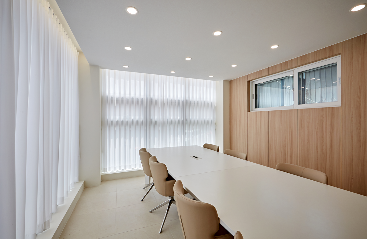업무 공간은 책상과 의자, 책장 등 가구 배치에 신경 썼으며, 수납 공간을 충분히 마련하여 깔끔한 사무실 환경을 유지할 수 있도록 했습니다.