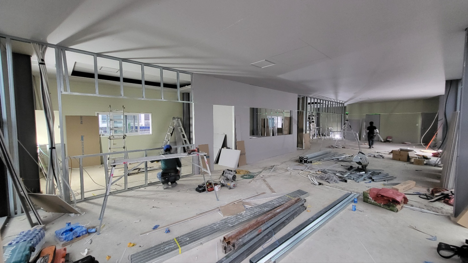 사무실인테리어 시 목공 작업을 통해 뼈대를 만들어주는 경우가 많지만, 이번 현장에서는 스터드와 석고보드 작업으로 튼튼하게 작업하여 보다 안정적으로 사용하실 수 있습니다.