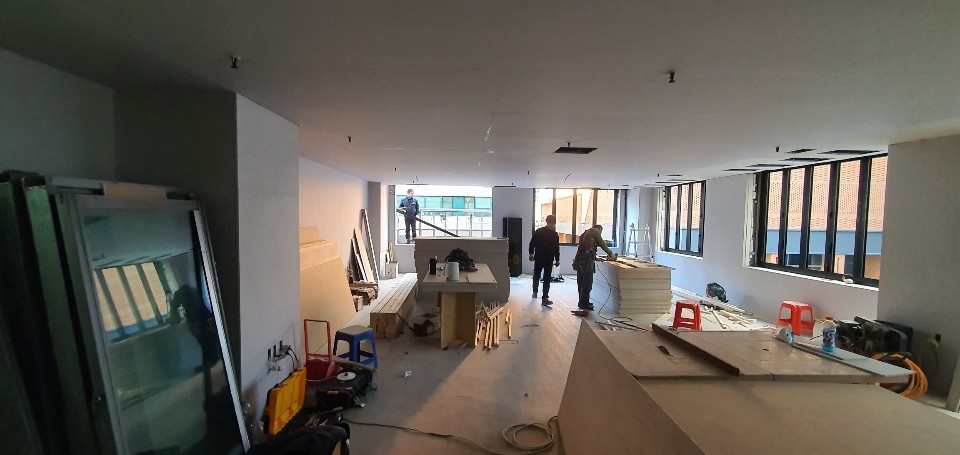 복층을 올릴 공간은 천장 덱스를 철거해 높이를 확보한 후 배선, 공조시스템, 배관, 소방시설 등을 정리해 안전하고 쾌적한 환경을 유지할 수 있도록 해드리고 있습니다. 물론, 모든 공정을 전문인력과 함께 진행하고 있으며 안전수칙 및 시공 단계를 철저히 지키고 있으니 믿고 안심하셔도 된답니다.