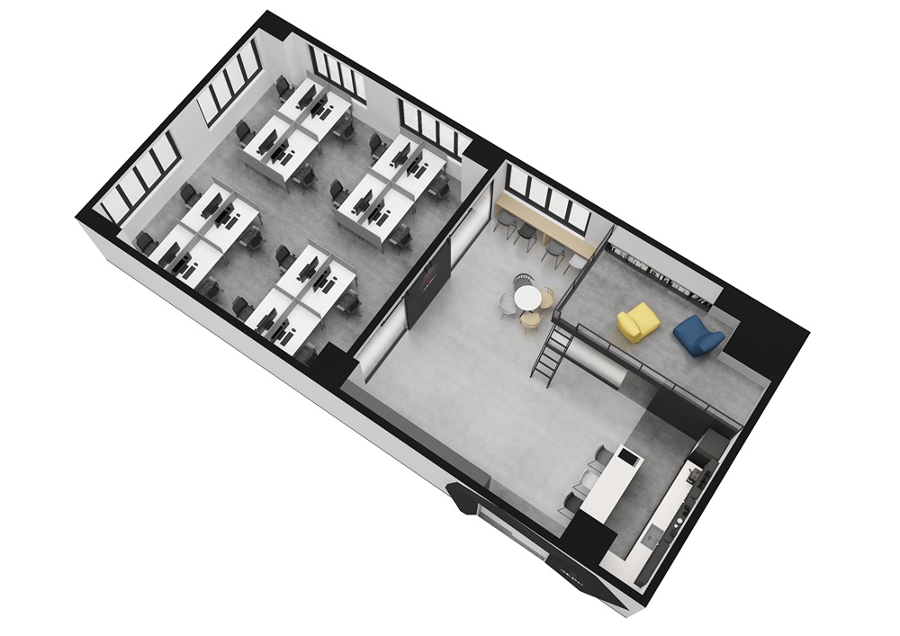 지식산업센터 특성상 층고가 높기 때문에 복층 공사를 제안드렸고 그에 맞는 화이트블랙 스타일을 적용해 디자인해드렸습니다. 자유로운 분위기의 이 회사는 고객의 요청에 따라 개별 사무 공간을 줄이고 직원들을 위한 공간 구성에 포커스를 맞춘 인테리어입니다. 기본적인 공간의 레이아웃은 오픈된 공간 구성이지만 업무의 효율성을 위해 사무 공간과 휴게 공간을 나눠 문을 계획해 개방성과 독립성을 부여했습니다.