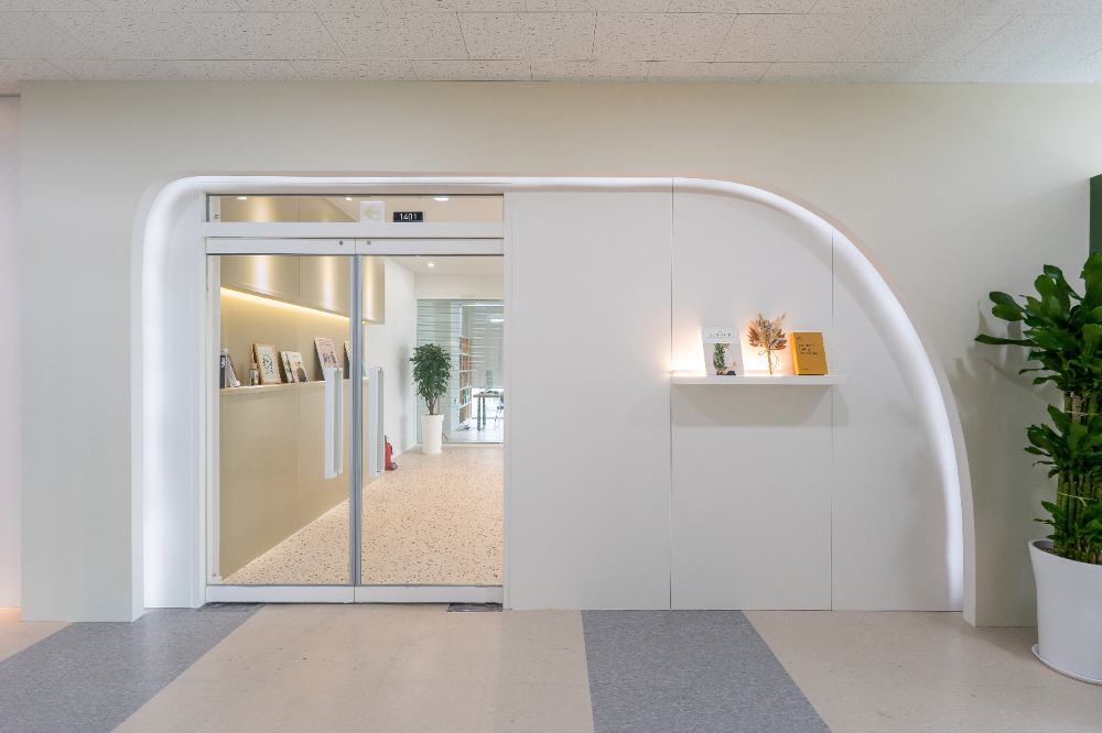 사무실 내부로 이어지는 통로를 따라가면