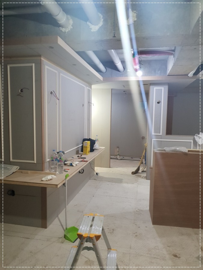 시공 현장 사진입니다. 저희 916 디자인은 전문 기술을 소지하고 있는 작업자들이 ISO 와 도안을 바탕으로 그와 동일하게 작업을 해드리고 있으며 혹시 모를 클라이언트의 요구에 맞춰서 언제든지 변동사항을 시행할 준비도 되어 있습니다.