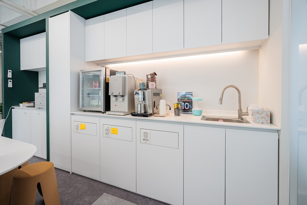 뿐만 아니라 불필요한 시각적 방해물을 제거하고 깔끔한 인상을 심어줄 수 있는 수납 공간 확보는 공유오피스에 있어 선택이 아닌 필수입니다.