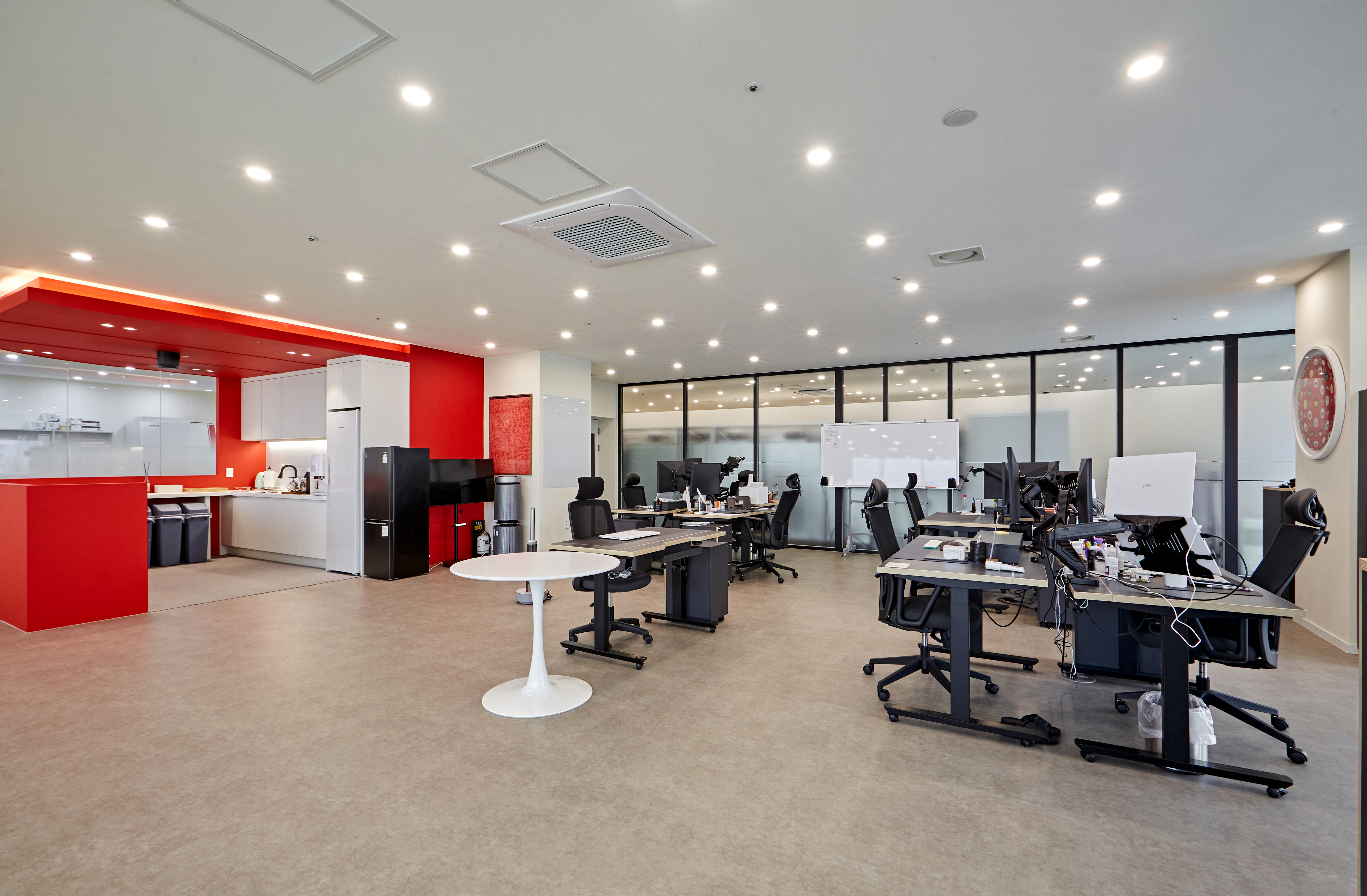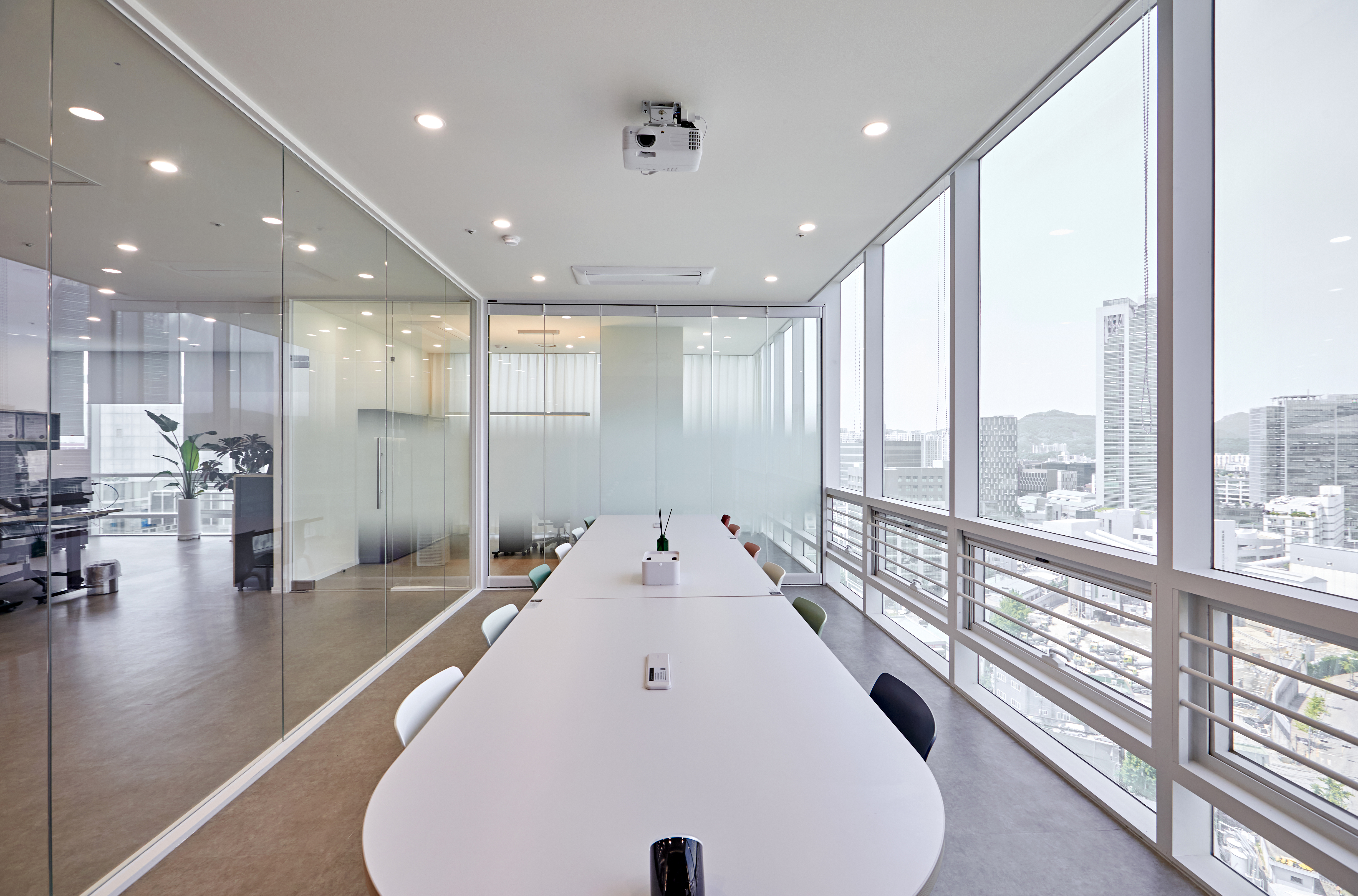 특히 탁 트인 통창과 내부 사무실 방향의