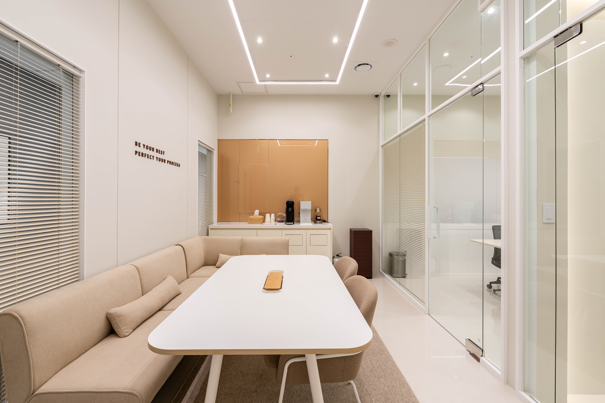 벽면은 모두 화이트로 마감하여 깔끔한 인상을 주고, 라인 조명으로 최적의 환경을 만들었답니다.