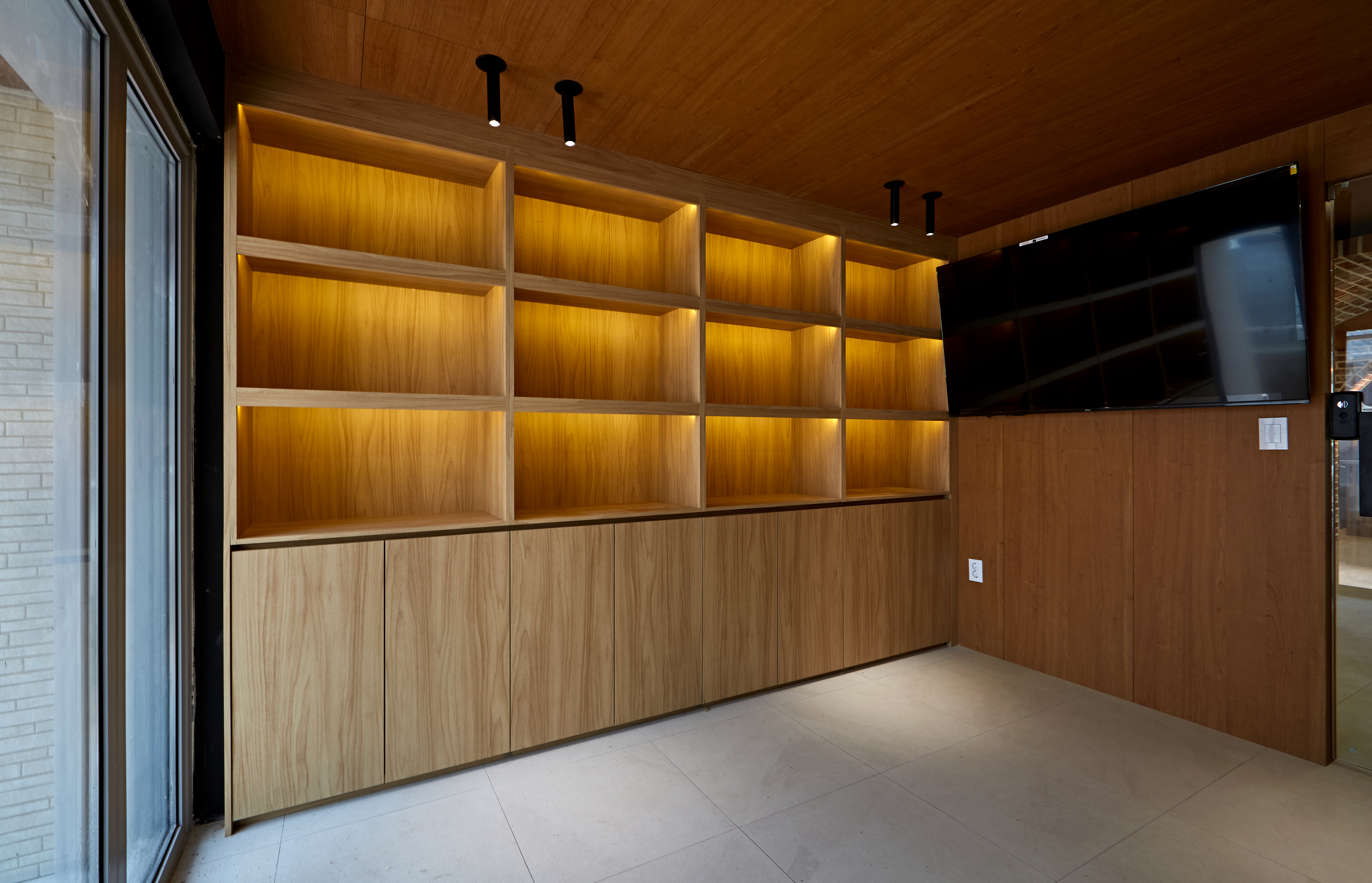 그리고 다른 공간에는 벽에 책장과 수납장을