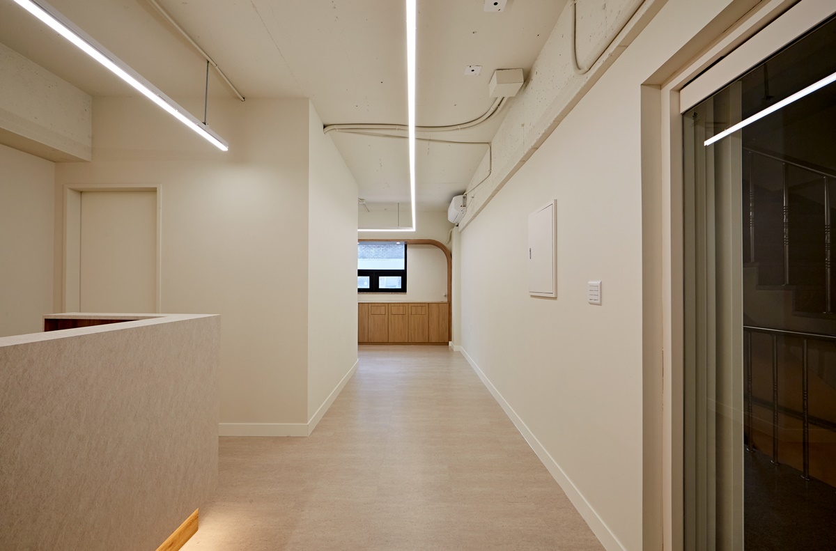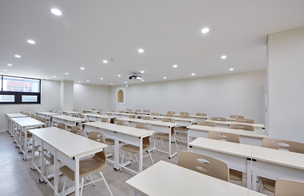 포인트 조명으로 시선을 집중시켜 강의실 내부의 공간감을 높였습니다.