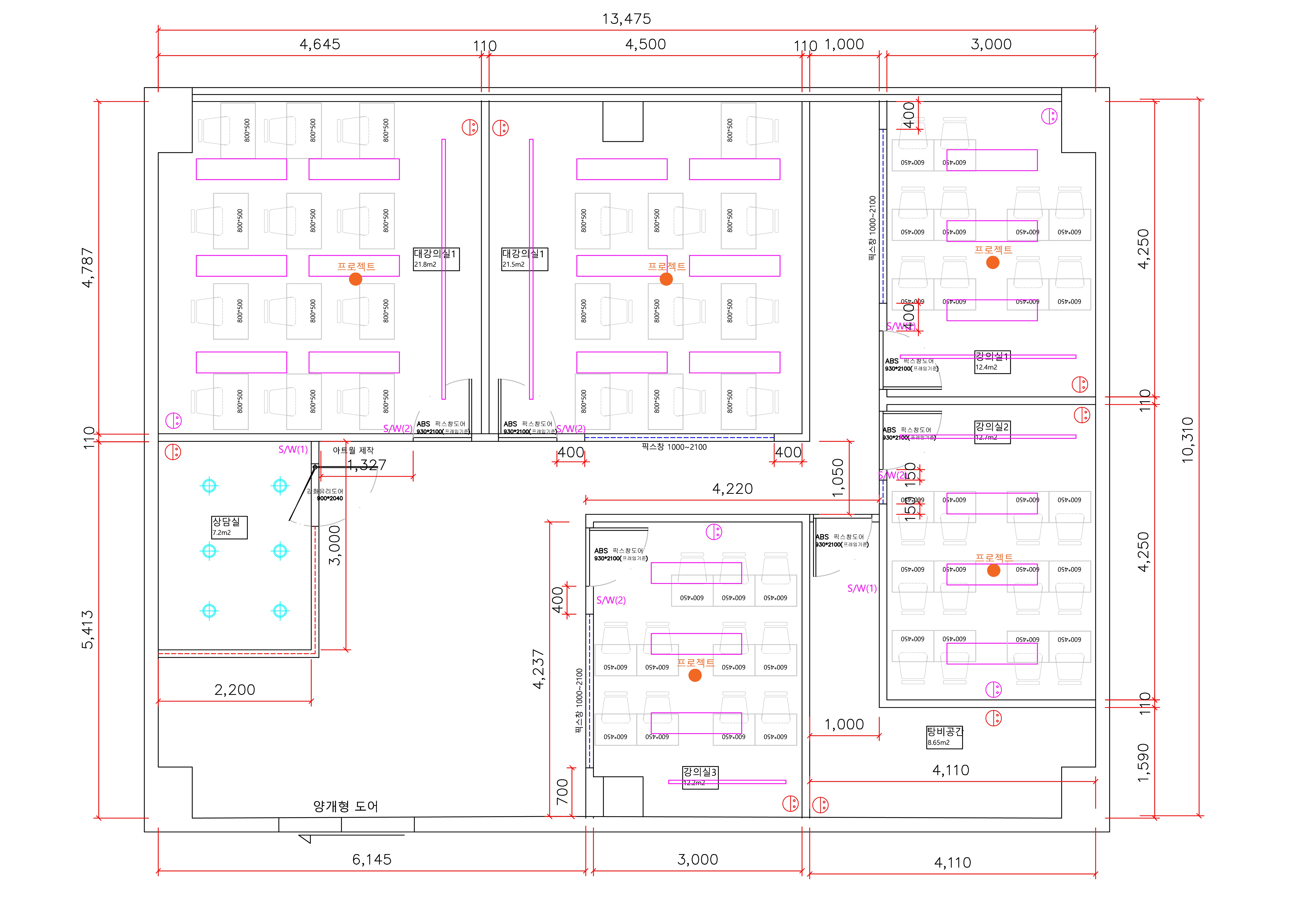 각 강의실별 특징을 고려해 테이블이나 의자와