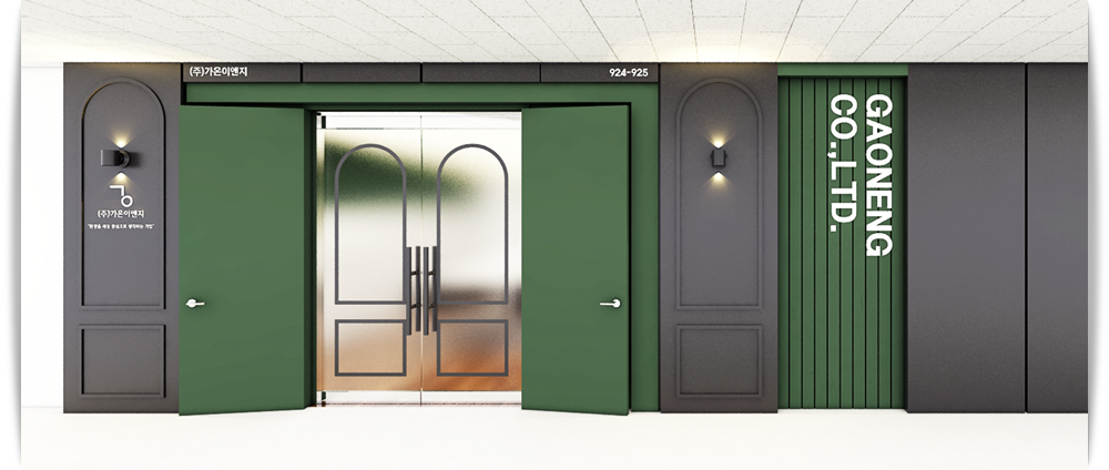 광교 오산 회사 사무실 입구 모습입니다. 벽면에 디자인 아트월을 넣어 멋진 공간으로 완성해 드렸으며 이번 현장의 포인트 컬러인 그린을 넣어 예쁜 공간으로 만들어 주었습니다. 아치형 모양의 디자인과 함께 회사 로고와 컬러감이 더해져 입구에서부터 싱그러운 분위기를 만나 보실 수 있습니다.