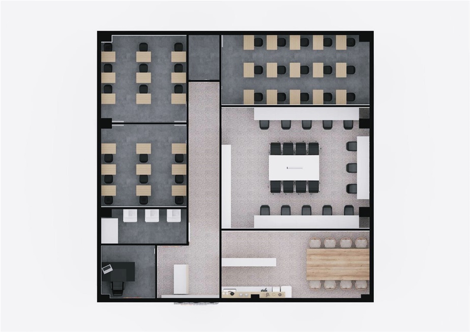 이번 현장은 영여 교육이 진행되는 학원으로 수업과 자유로운 스터디가 가능하기를 원하셨고 동시에 카페와 같은 예쁜 휴식 공간도 원하셨답니다. 현장을 답사하고 실측해 보니 거의 정사각형의 평면이어서 양측으로 교실을 배치한 복도형으로 제안드리면서 입구측에 카페테리아를 배치해 교육공간과 명확하게 분리했습니다.