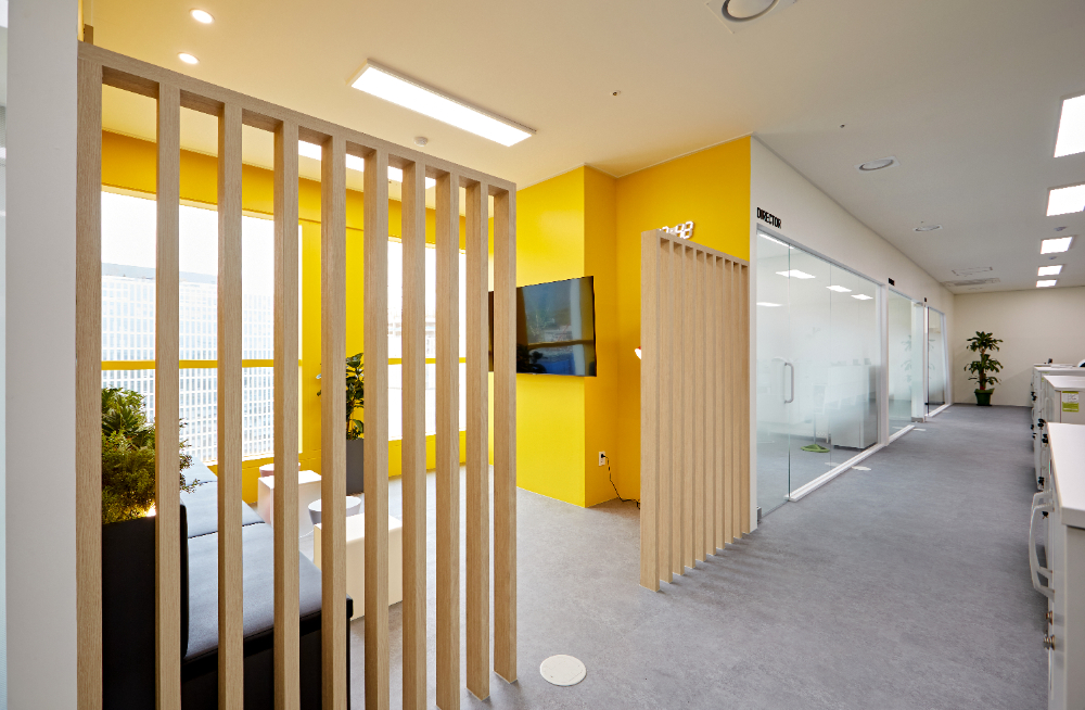 사무실을 둘러보면, 그 회사의 가치관과 생활 패턴을 알 수 있게 되는데요. 이 현장은 누가 보아도 젊은 세대들이 좋아할만큼 워라밸을 중요시하는 회사라는 곳이 느껴집니다. 그리고 밝은 에너지가 저절로 느껴지면서 모두가 일하고 싶은 공간이 되리라고 자부하는데요.