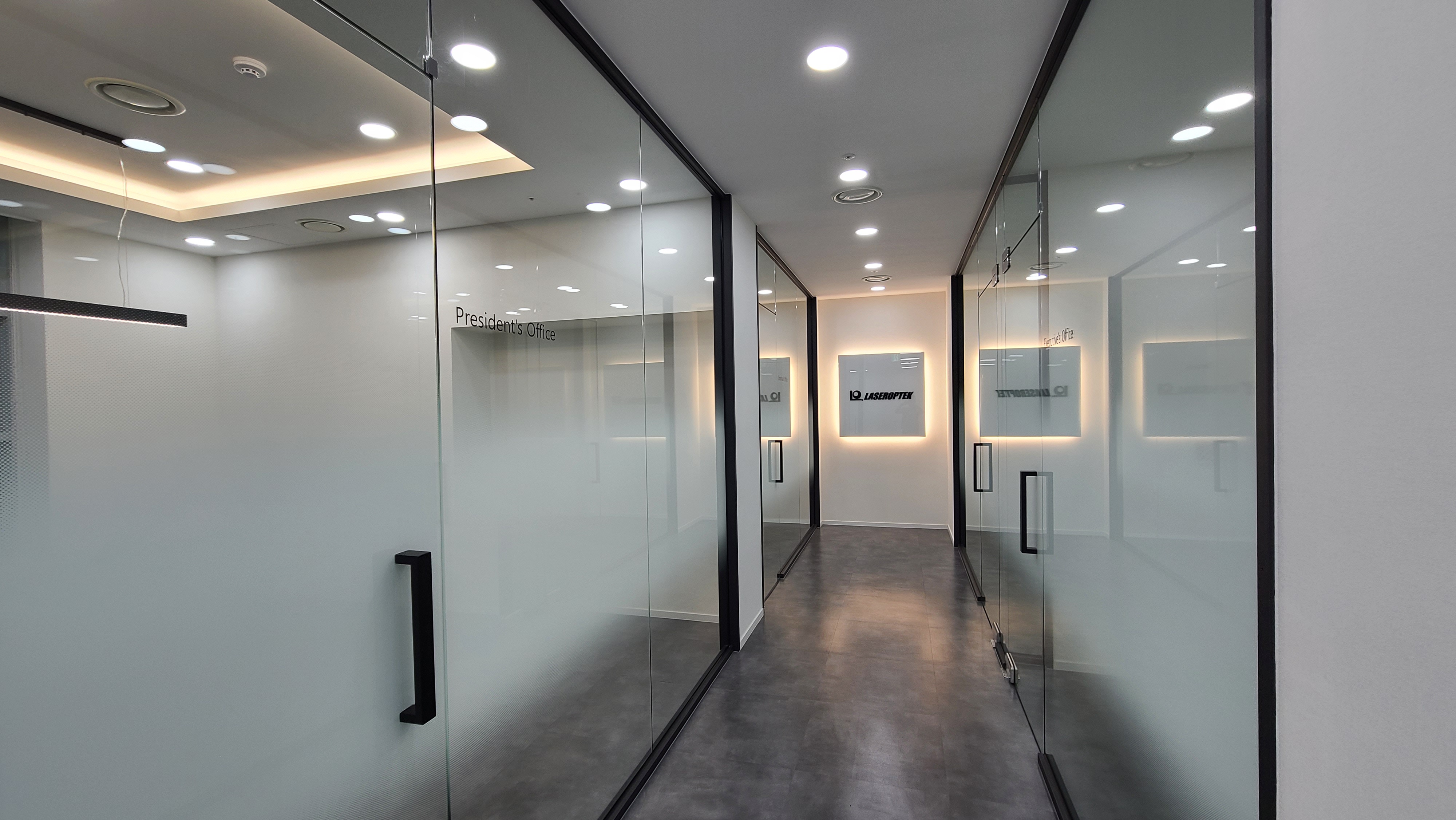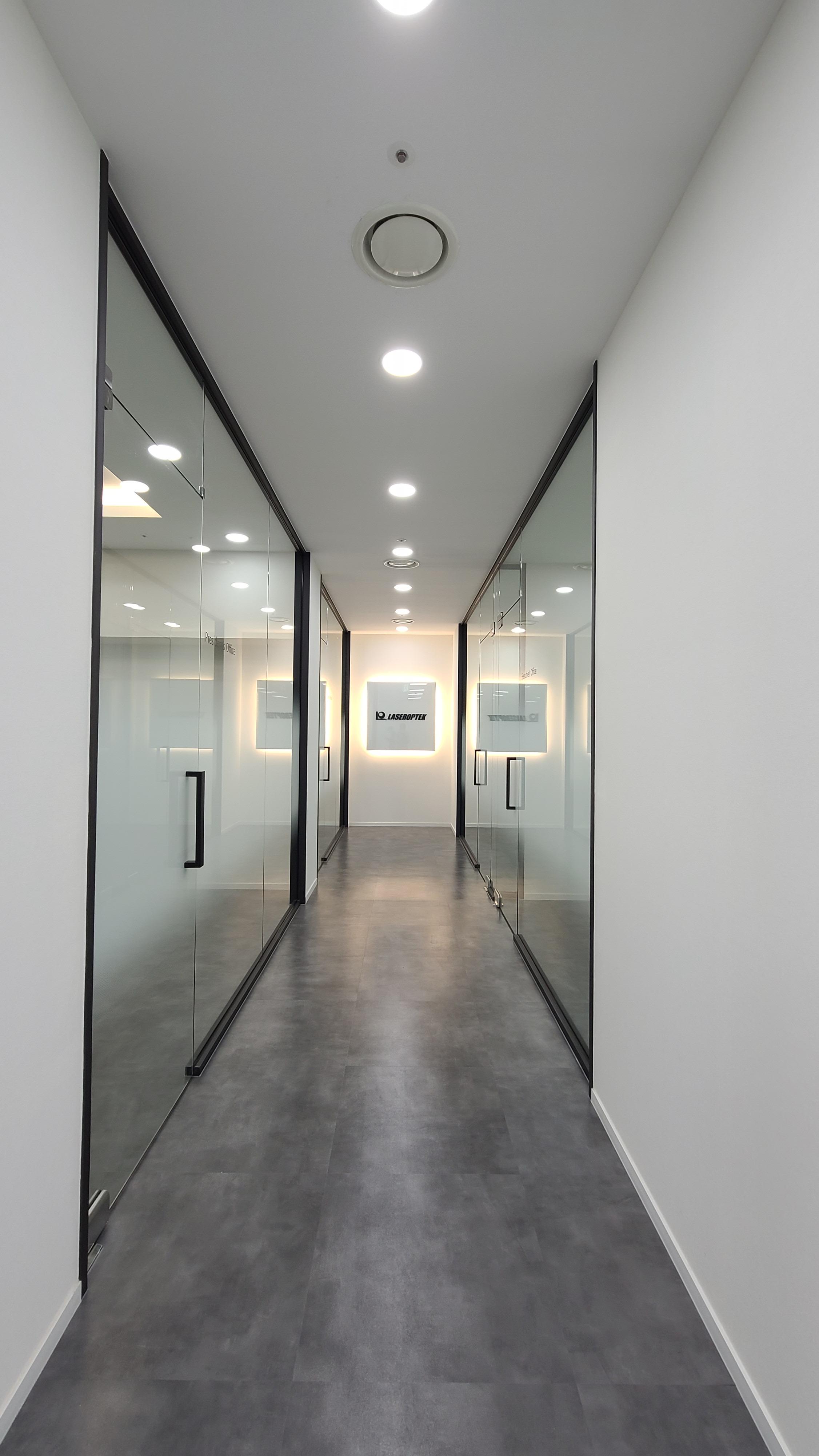 일직선으로 뻗은 사무실 내부 복도는