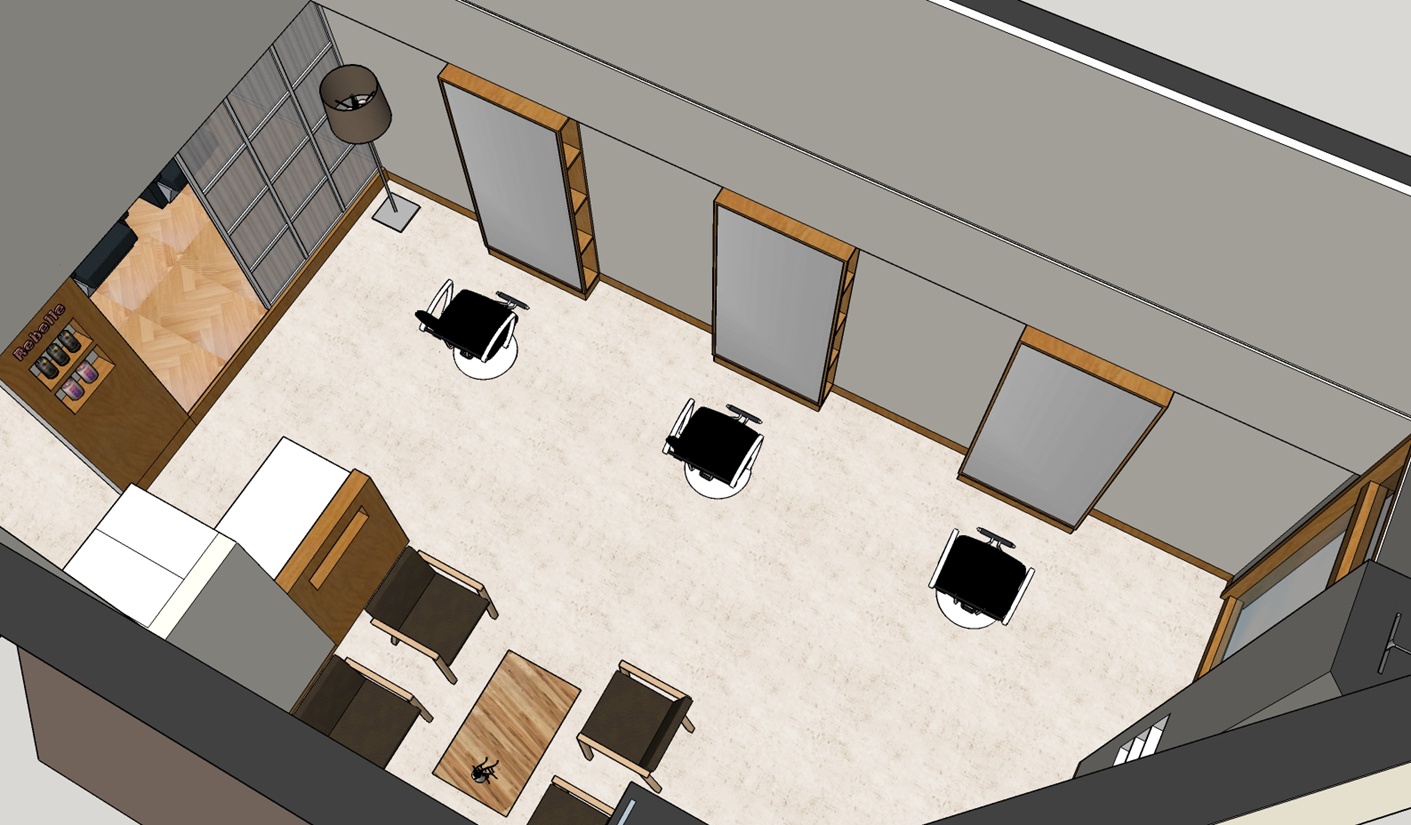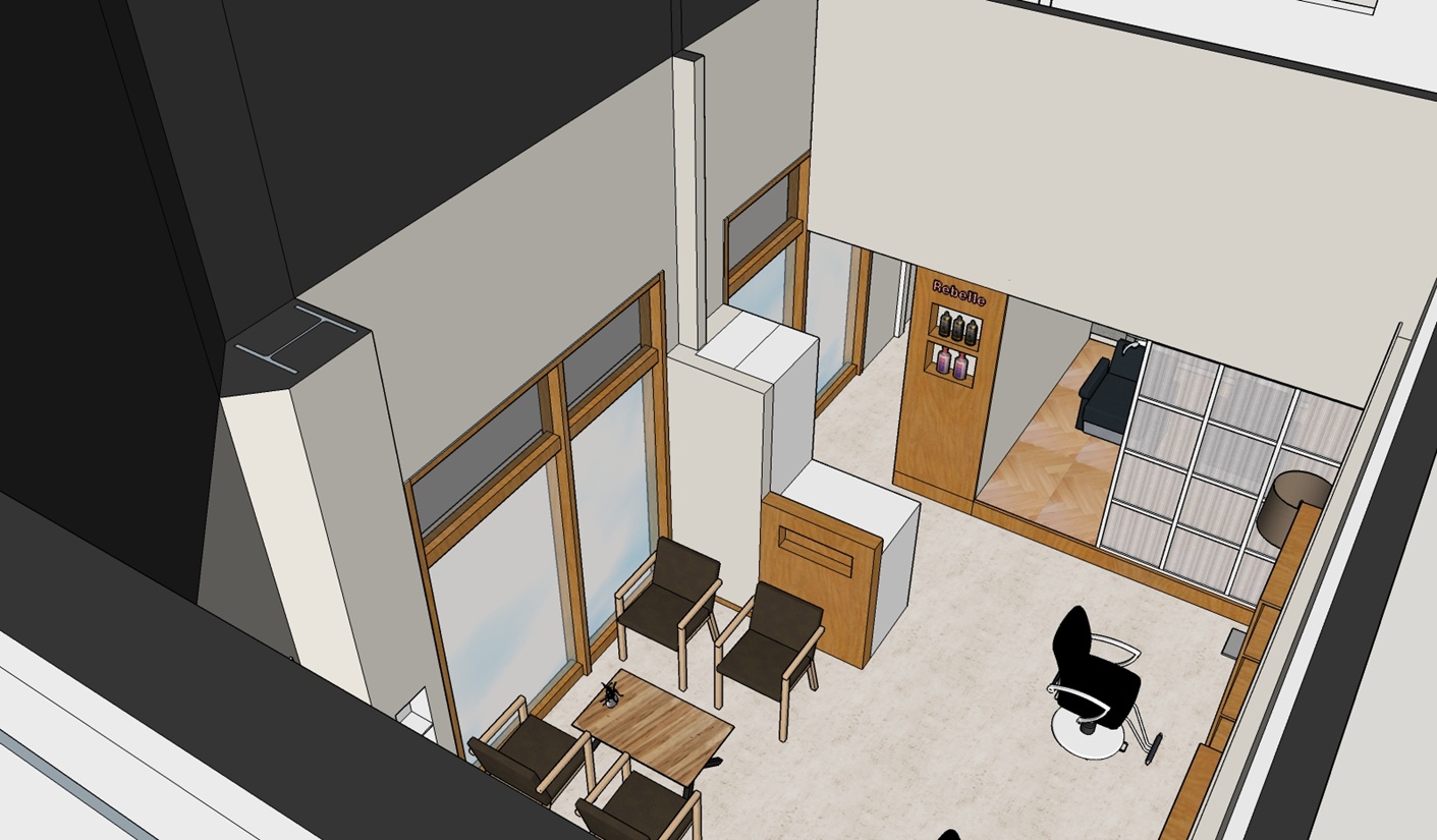 이번 디자인에서는 카운터, 커트존, 샴푸존이 자연스럽게 이어지도록 배치해 운영효율을 높였습니다.