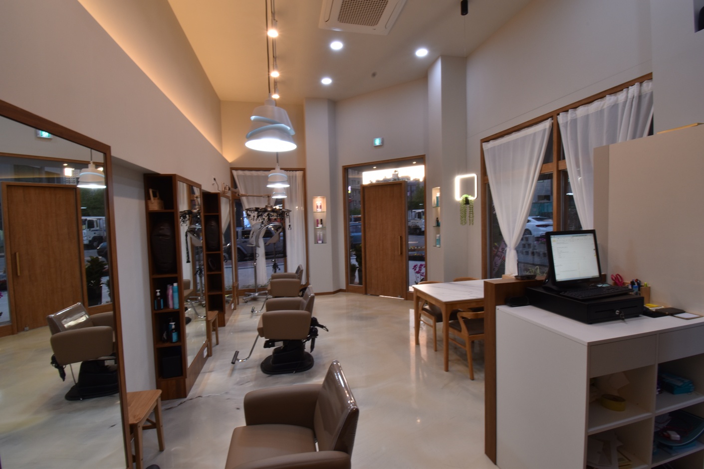 이런 작은 조명 변화만으로도 미용실 전체 분위기가 훨씬 고급스럽게 살아납니다.