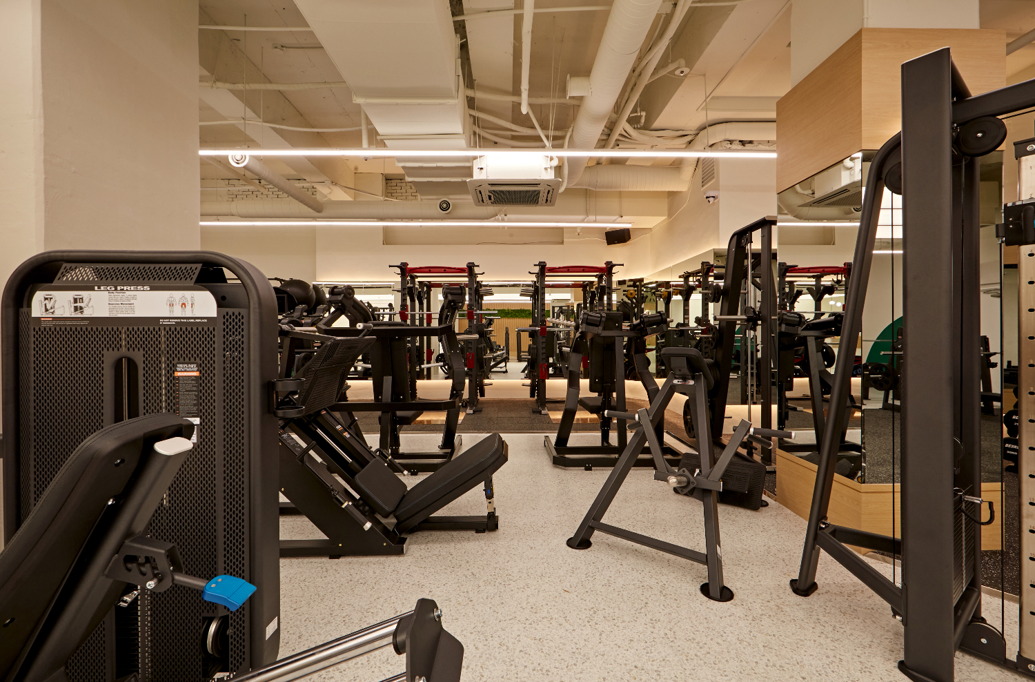 그 옆에는 기본적으로 웨이트를 할 수 있는 공간과 맨몸으로 운동할 수 있는 곳들이 마련되어 있으며 용도가 달라질 때마다 바닥의 소재를 달리하여 공간을 분리하는 센스를 보여주고 있습니다.