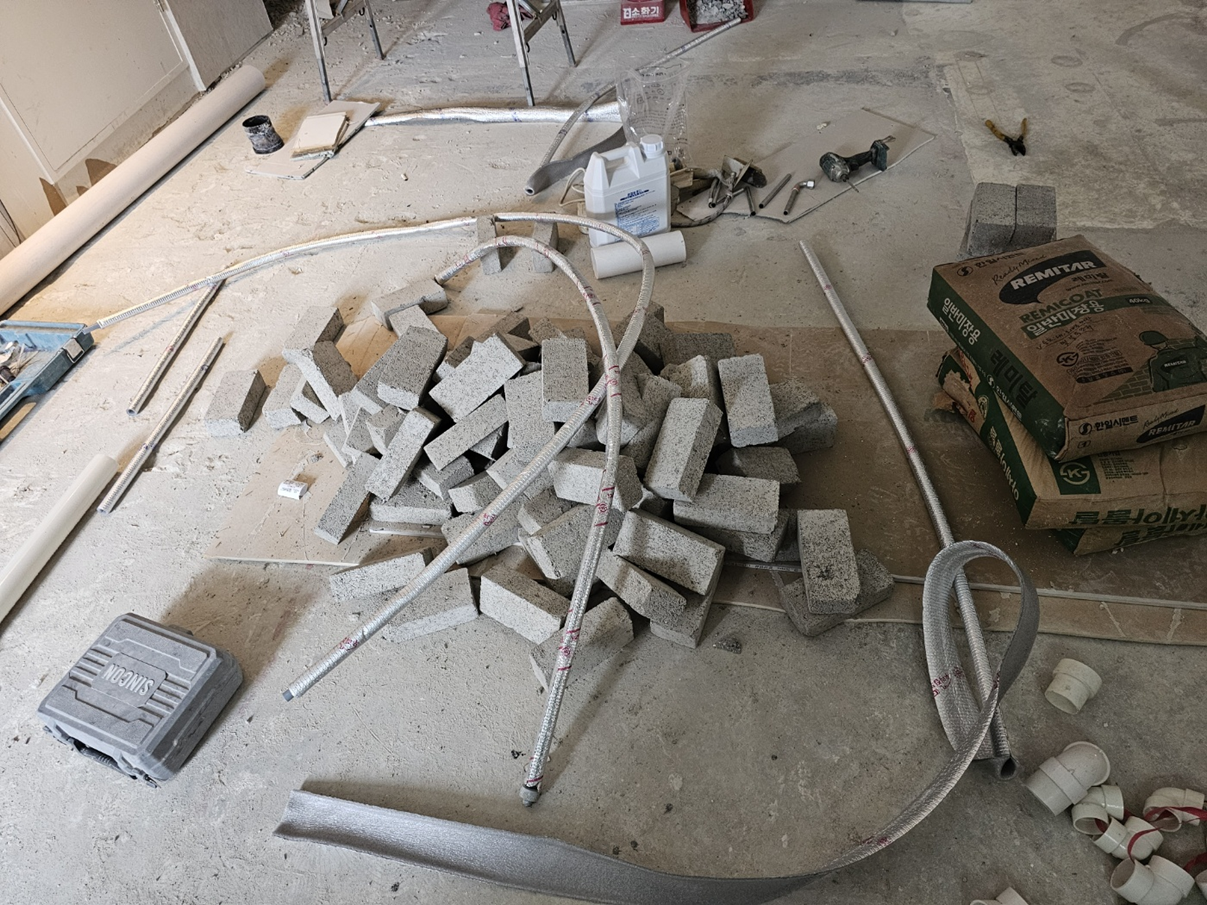 이 단계에서는 필요한 배관, 전선, 통신선 등을 적절히 배치하여