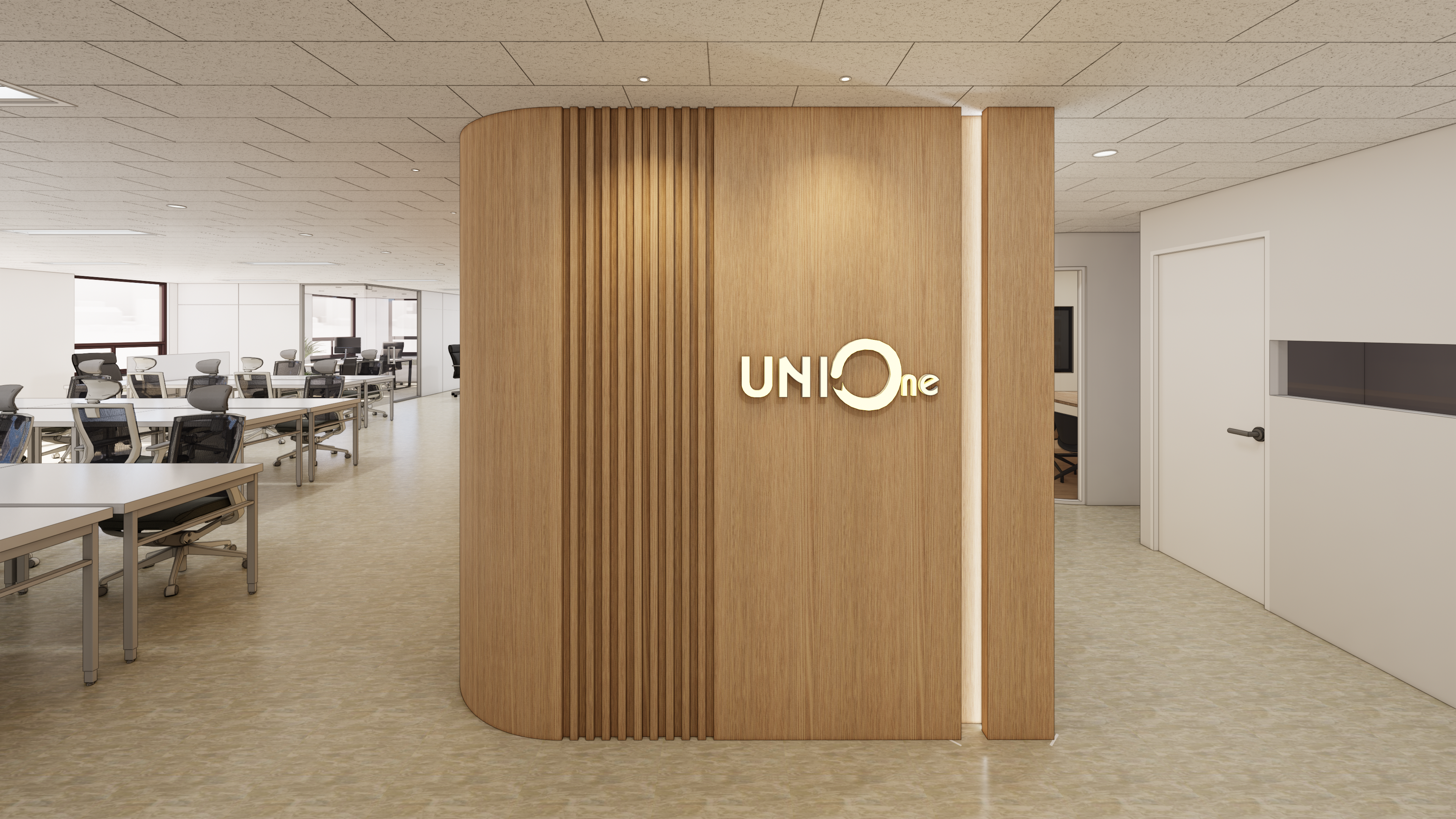 우드 파티션으로 깔끔한 화이트톤의