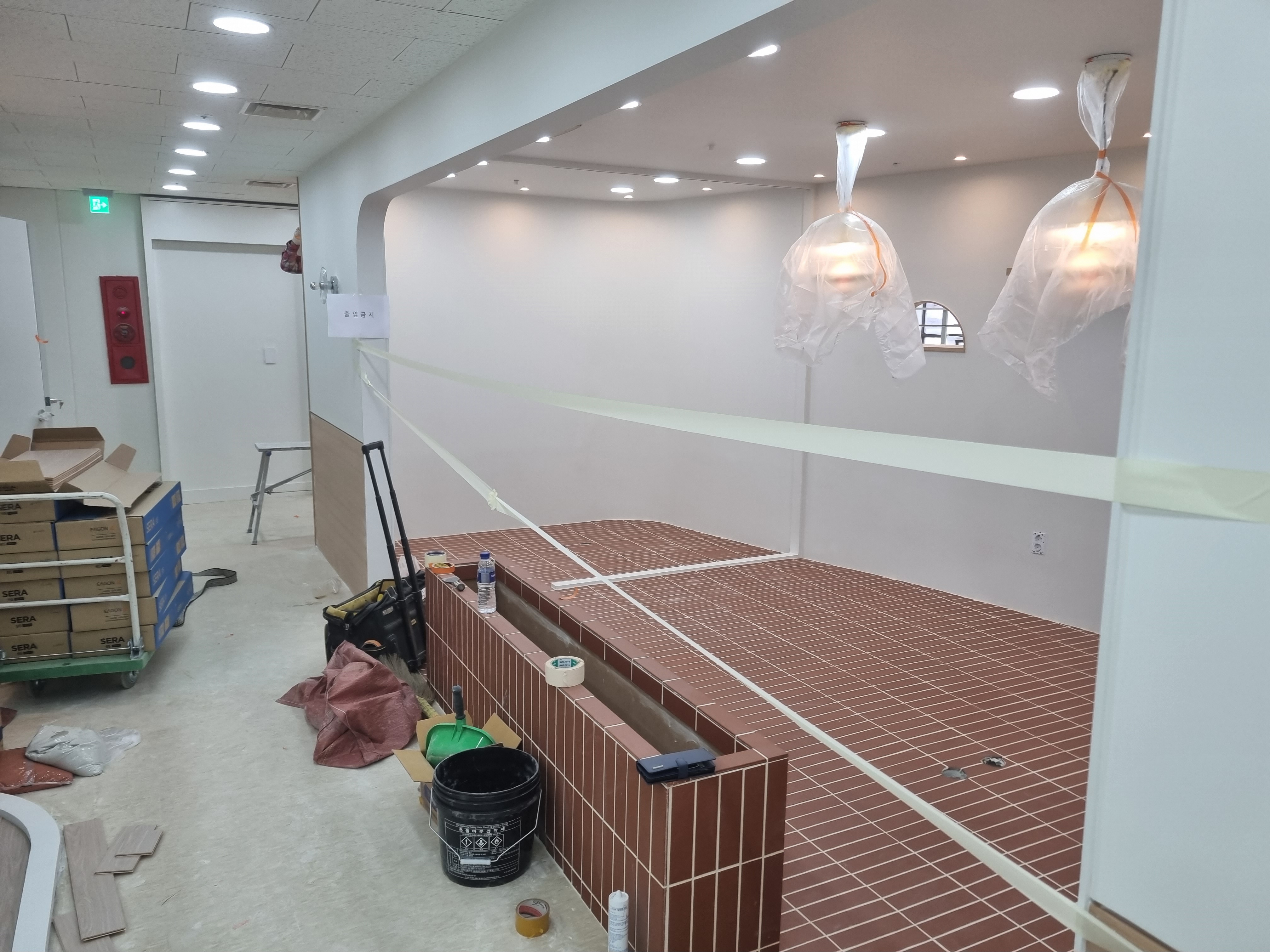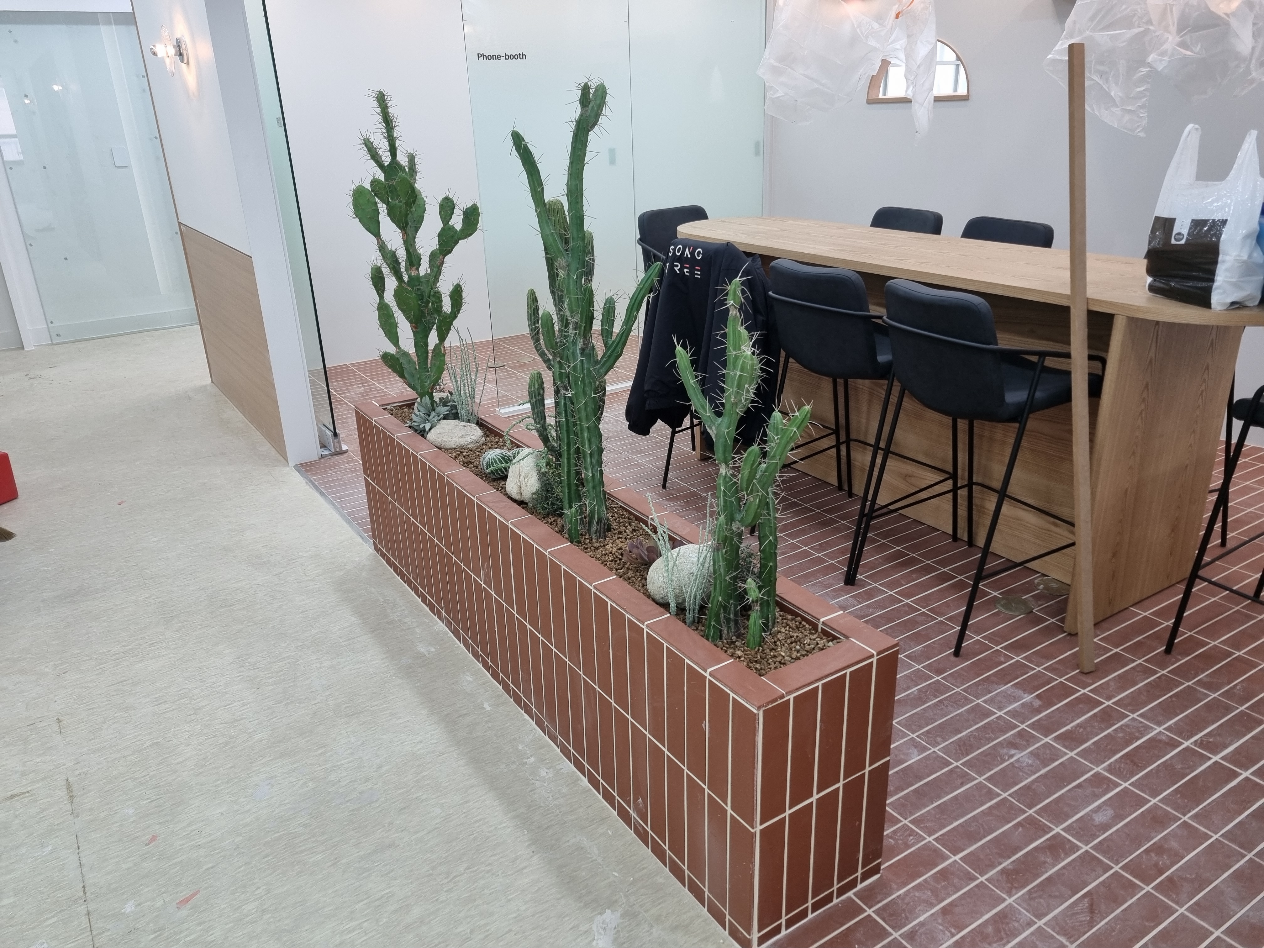 카페테리아에 테라코타 타일 시공을