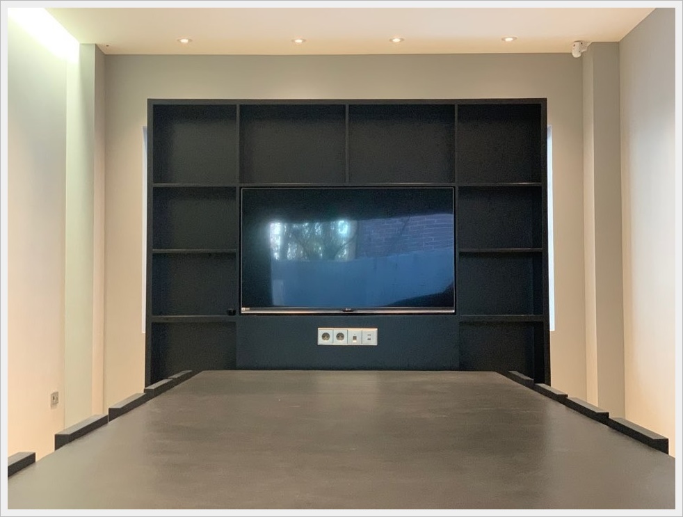 마지막으로 공용공간 테이블 앞쪽에 위치하고 있는 수납장은 티브이 사이즈에맞춘 맞춤장으로 만들어 드렸으며 사이드 부분에는 수납을 하거나 인테리어 소품을 놓을 수 있도록 설계하여 완성해 드렸습니다. 지금까지 구로 가산동 금천구 사무실인테리어, 현대모던 스타일 소규모 공간분리현장을 보여드렸습니다.