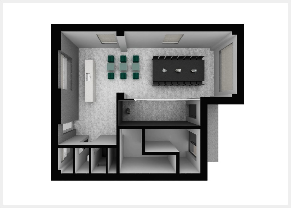 가장 먼저 구로 가산동 금천구 사무실인테리어, 현대모던 스타일 소규모 공간분리 현장의 전체 도면을 만나 보시겠습니다. 가운데 공용공간을 기준으로 하여 아래쪽으로 공간이 분리되어 있으며 전체적으로 멋진 분위기를 자아내기 위해 무게감 있는 컬러를 사용하여 디자인하였습니다.