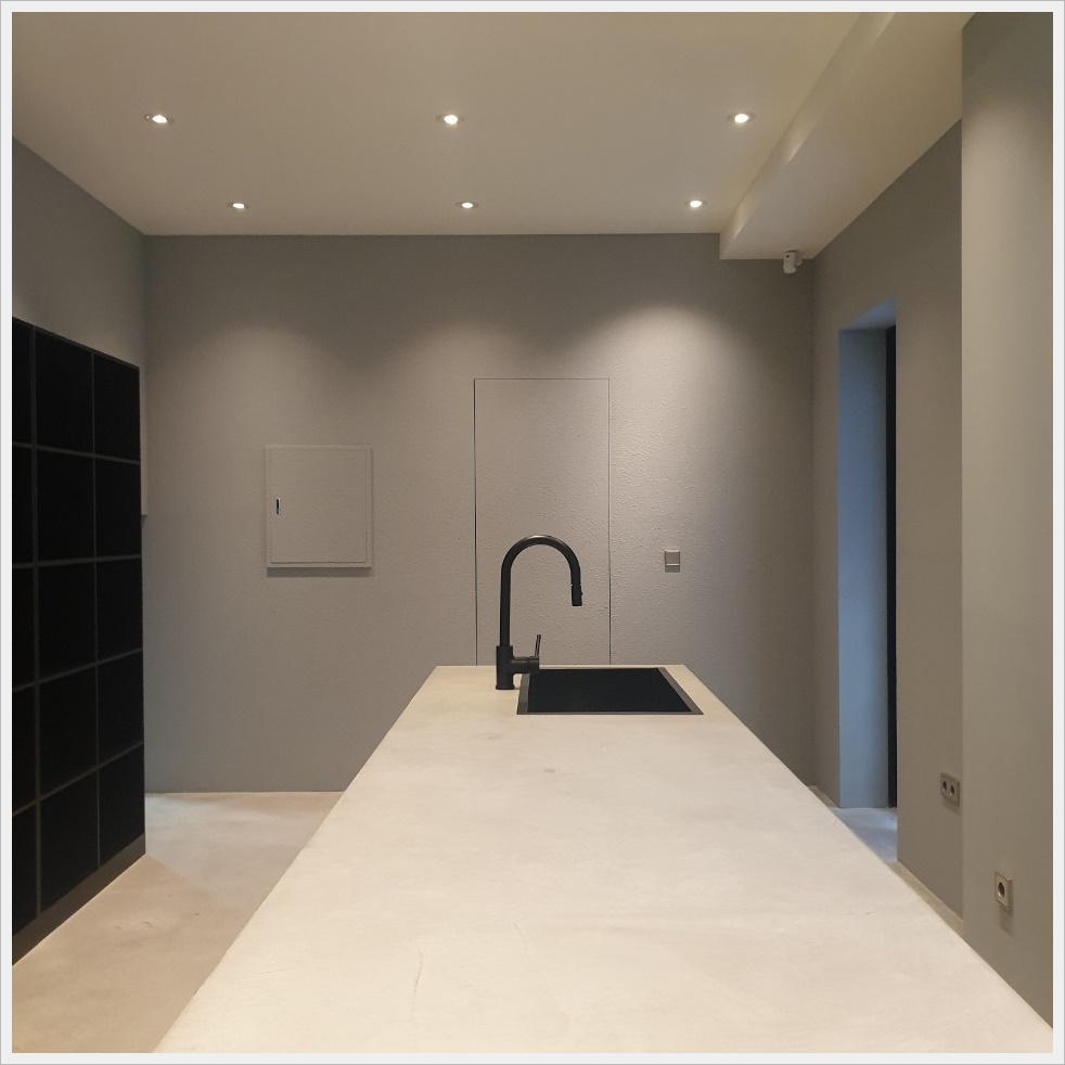 이번 현장 벽면은 페인트 시공을 하면서 질감이 느껴지도록 표현하였습니다. 그로 인해 공간이 밋밋해 보이지 않고 세련된 멋진 분위기를 보여주고 있습니다.