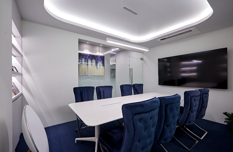바닥은 마찬가지로 블루 컬러로 회의실임을