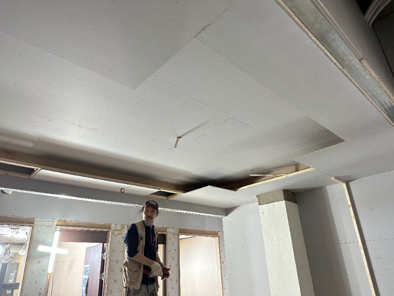 아무것도 없던 시멘트 천장에 목공 작업을 통해