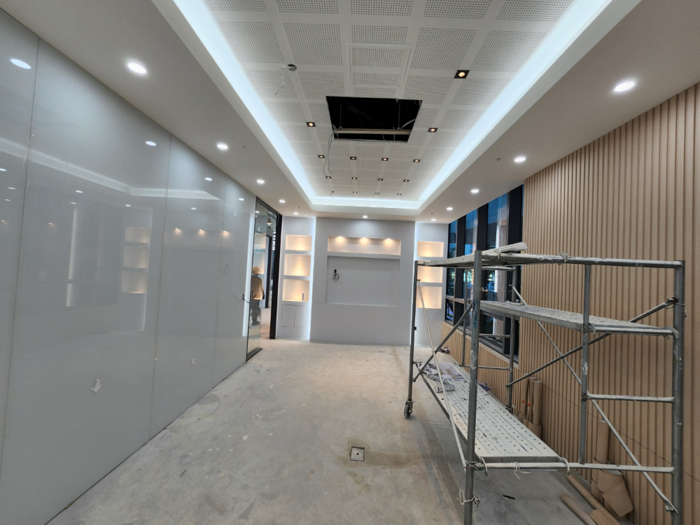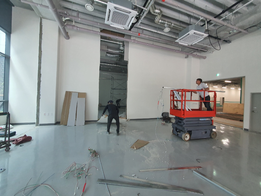 클라이언트분의 니즈와 기업의 이미지가 3D디자인을 통해 자연스럽게 표현되어 완성도가 매우 높았습니다. 이를 바탕으로 현장에서도 전문가들의 발 빠른 작업이 진행 되었는데요. 지금부터는 구리갈매 현대테라타워 사무실인테리어의 시공 현장을 함께 보시죠!