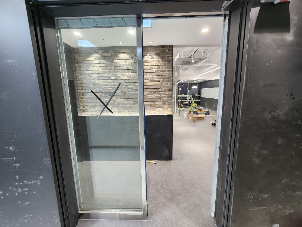불투명 시트지로 가려져있던 유리문이 열리면