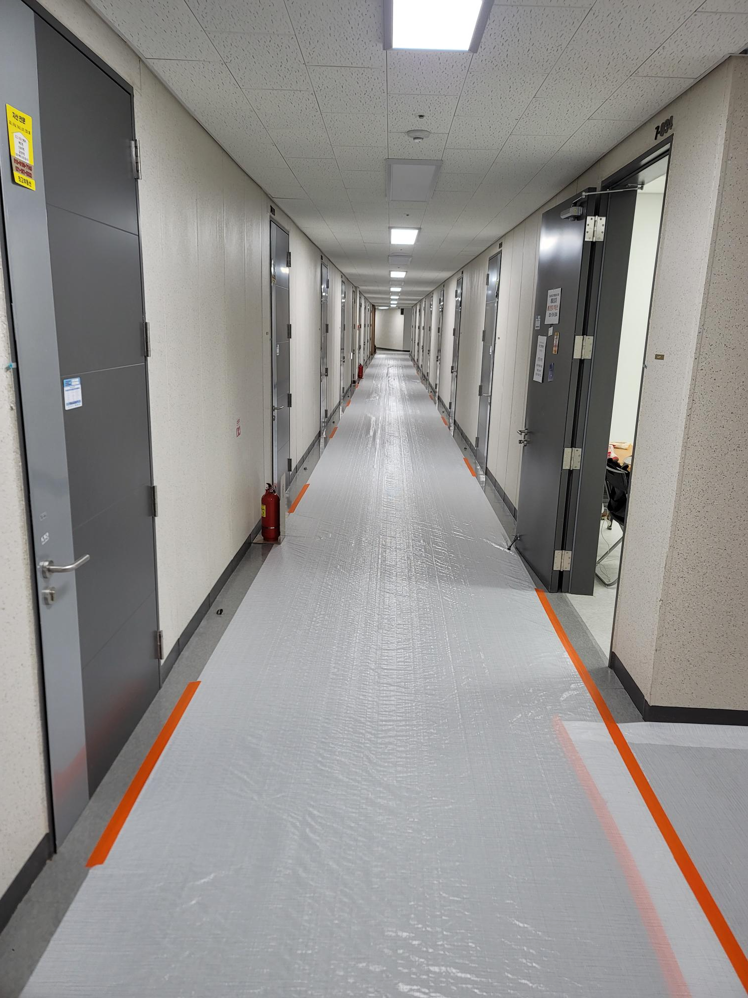 지식산업센터는 내부까지 주차장이 연결되어 있어서 보다 신속하게 필요한 자재를 이동 시키고 시공을 시작할 수 있었습니다. 외부 파사드까지 시공할 예정이었기 때문에 바닥 부분도 꼼꼼하게 보잉 작업을 진행 했습니다.