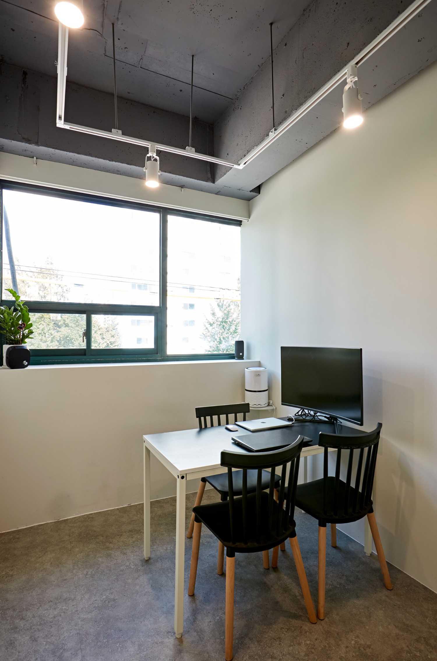 상담실은 아무래도 프라이빗하게 이야기가 진행되고 시끄러운 바깥과는 다르게 차분한 분위기르 만들기 위해서 노력했는데요. 역시 미니멀한 인테리어를 추구하셨기에 딱 필요한것들만 배치하고 코너 선반을 통해서 별도의 수납장이 필요없게끔 활용하였습니다.