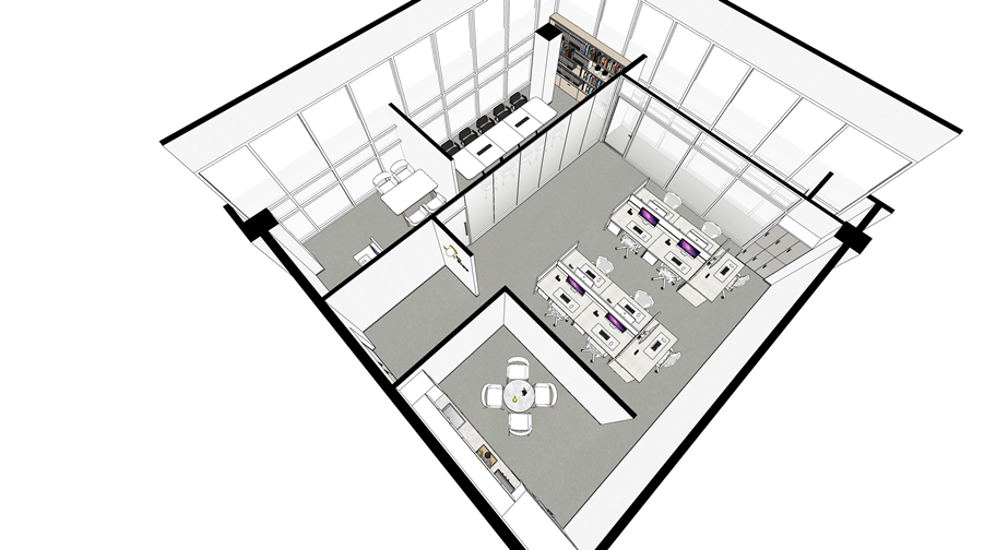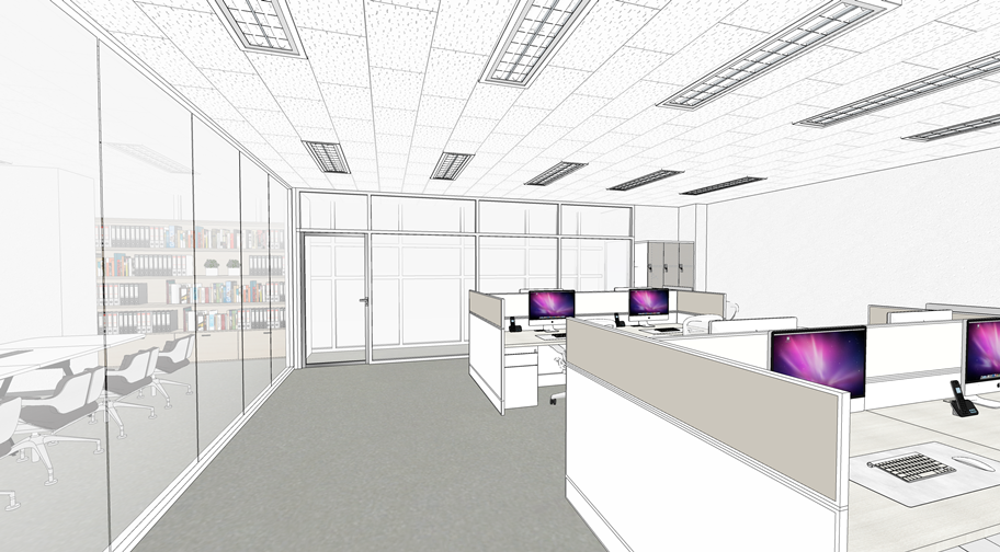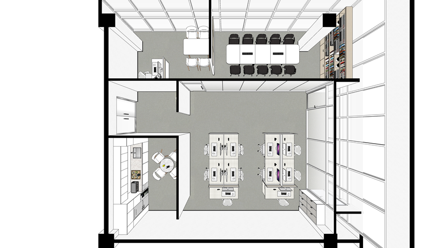 하지만 클라이언트를 만나거나 업무상 통화를 많이 하는 대표실과 의견을 주고 받는 회의실, 휴게실은 소음이 발생할 수 있기 때문에 개별형 사무실로 계획을 하는 것이 좋겠죠. 소음때문이 아니더라도 외부 손님이 방문했을 때 대표실이나 회의실이 일반 사무실에 통합되어 있다면 자칫 신뢰를 줄 수 없기 때문에 가능한 분리해 배치하는 것이 도움된다고 합니다.