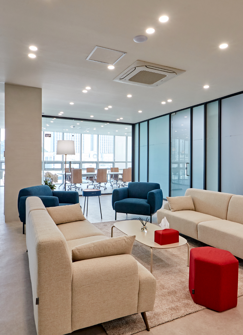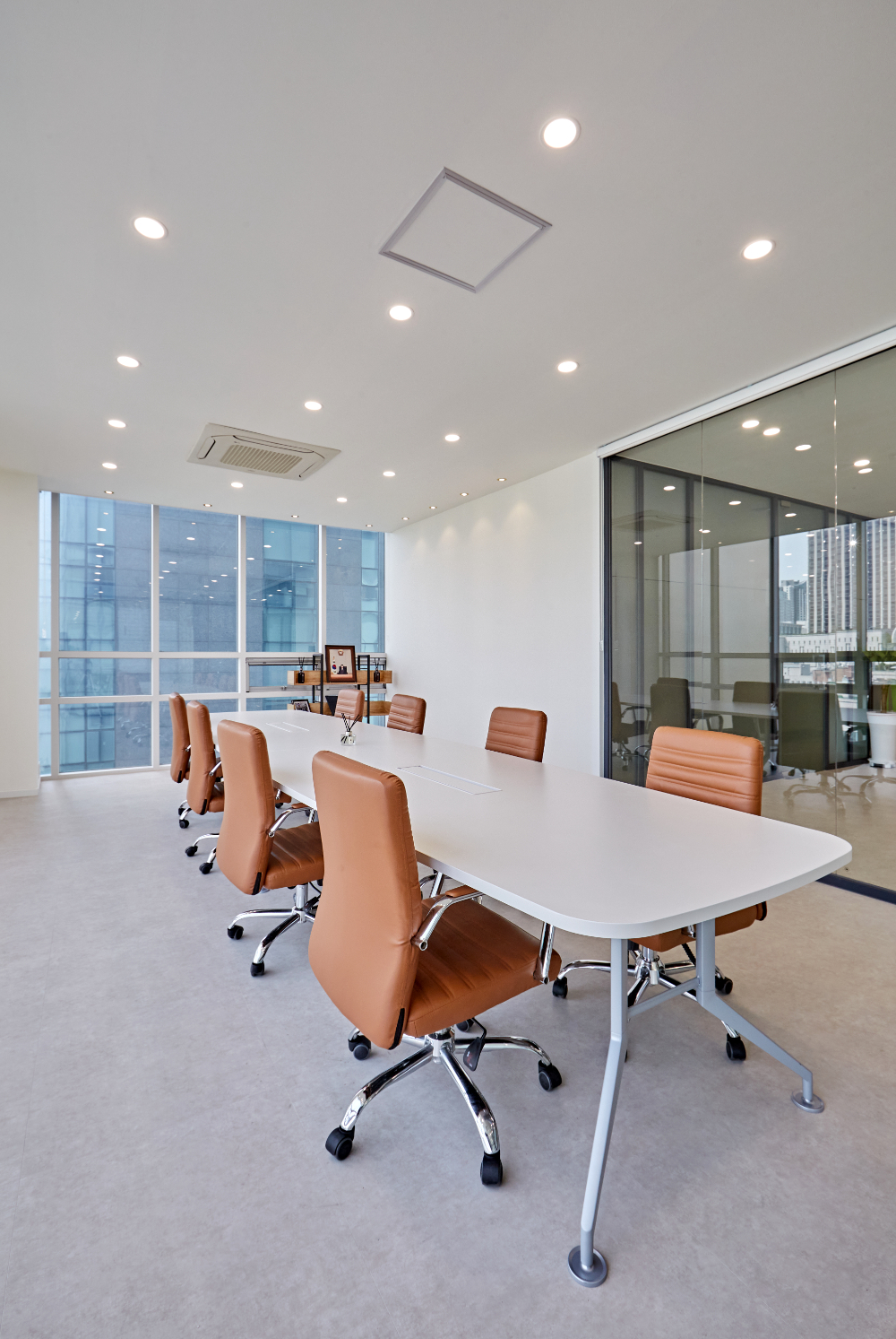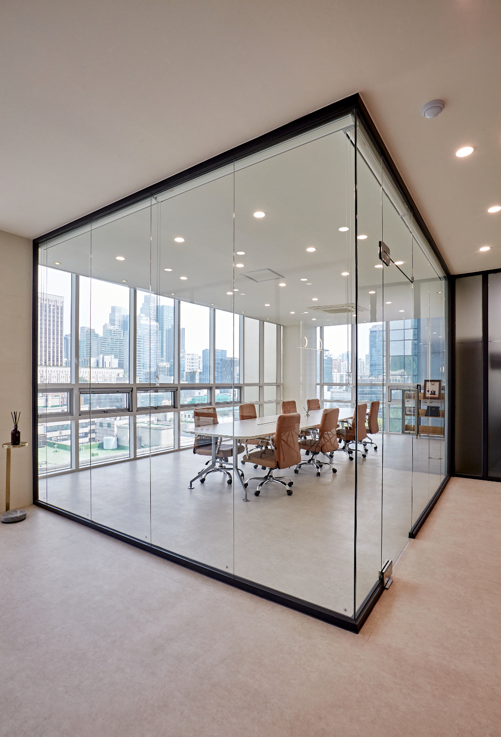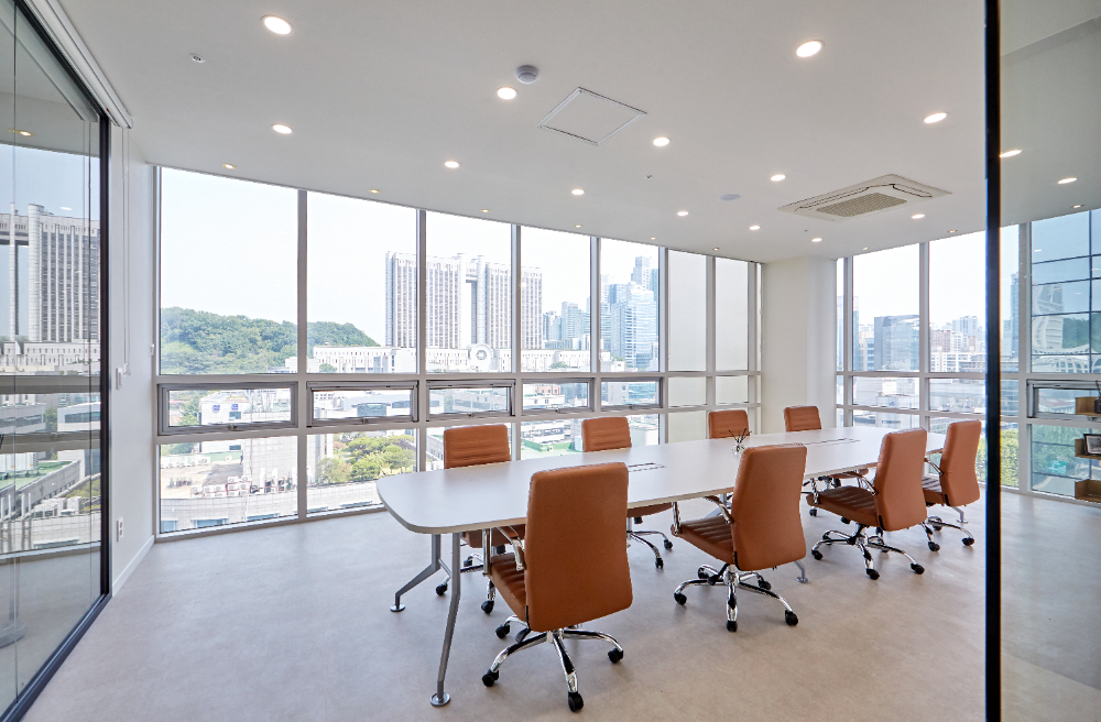 메인 미팅룸은 통창과 글라스월로 전체적으로