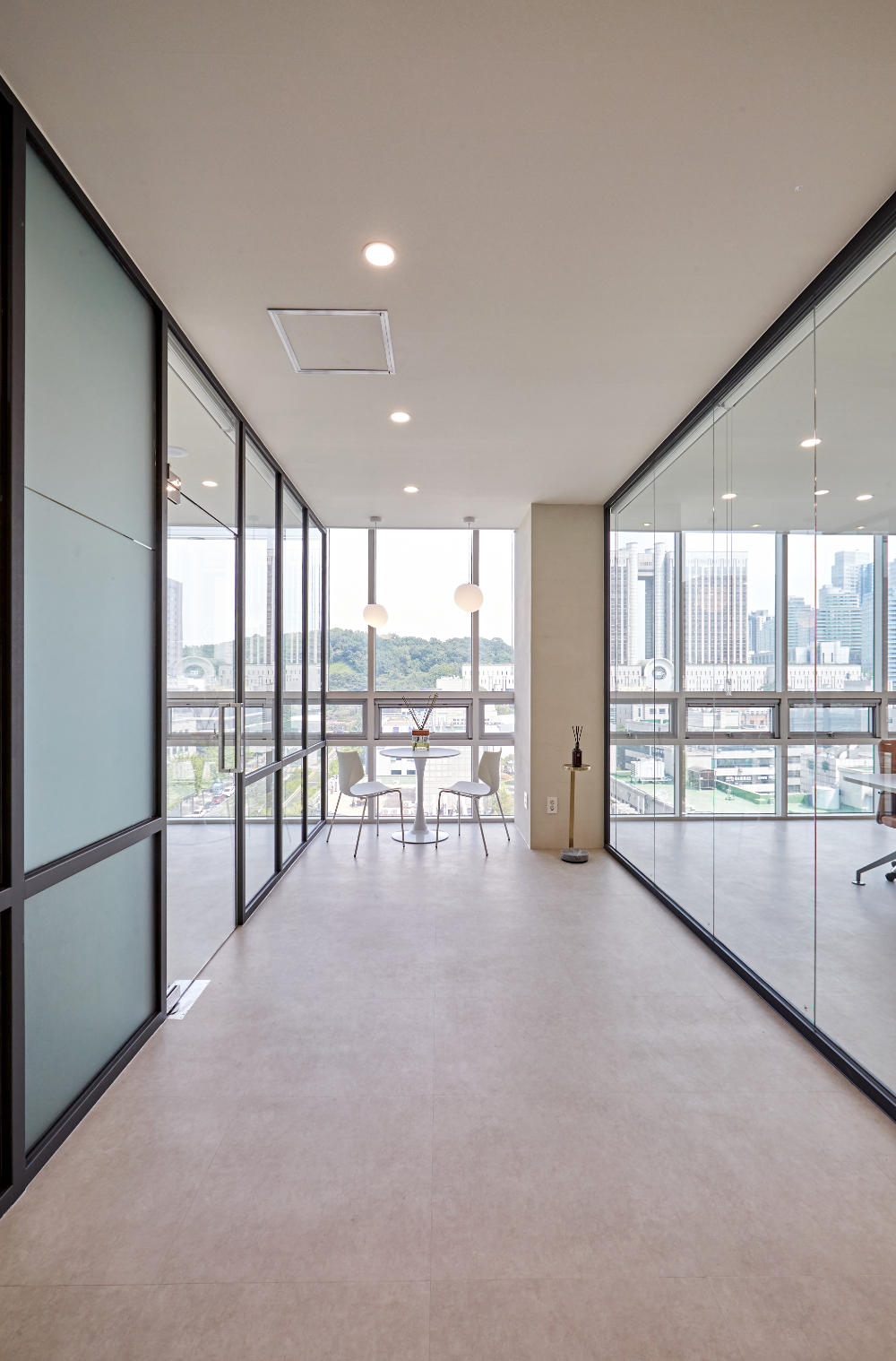 2면이 통창으로 되어있고 천장도 매립