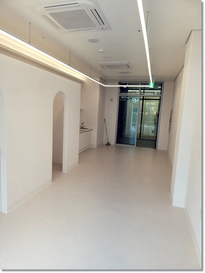 바닥 부터 천장 벽면까지 모두 같은 컬러로 시공하여 공간의 완성도를 높였습니다. 공간 전체에 같은 컬러로 시공하여 더욱더 깔끔해 보이며 넓어 보이는효과를 주고 있습니다.