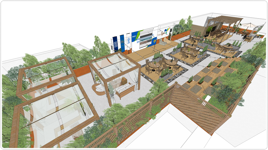 오늘은 구미 첨단의료기술타워 한라시그마밸리 사무실인테리어에 도움이 될만한 디자인 시안을 소개해드리겠습니다. 사무를 보는 공간보다는 행사를 진행하는 루프탑 공간으로 제안을 드렸던 디자인인데요, 최상층을 사용사용하면서 루프탑까지 사용하는 경우 카페테리아겸 행사장으로 사용한다면 시그니처 플레이스로 임팩트를 줄 수 있습니다.