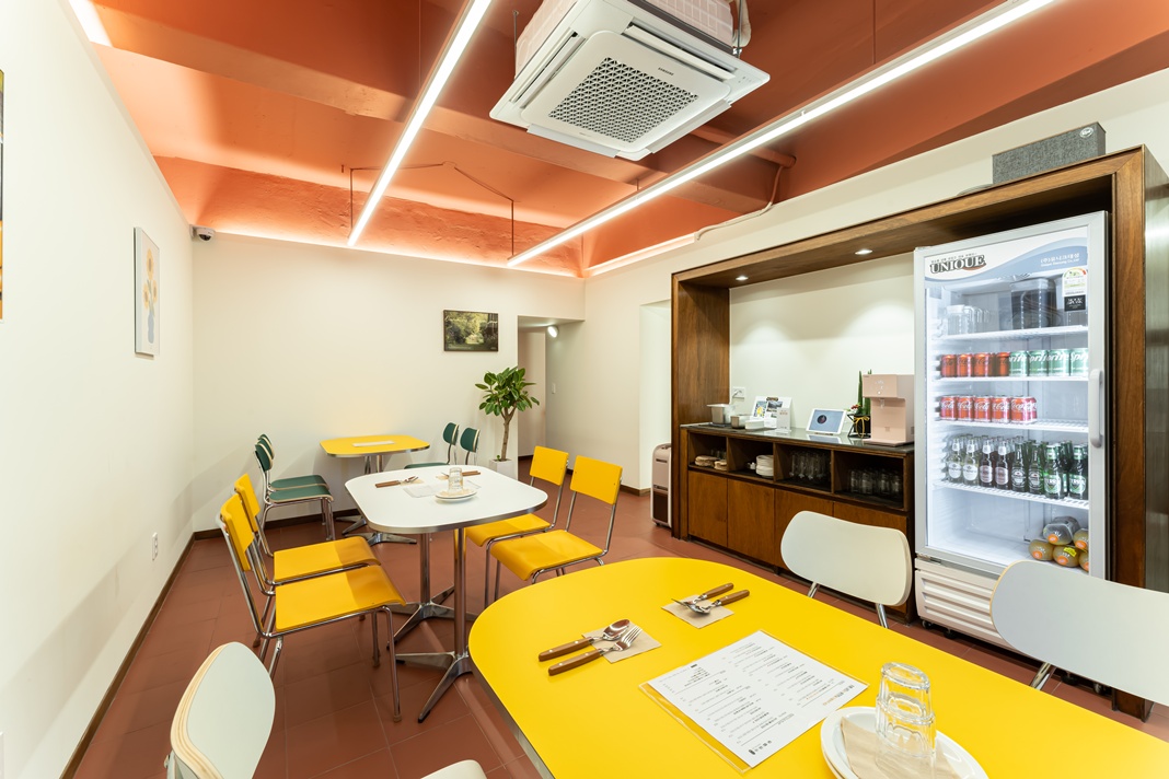 내부는 따뜻함과 활기를 동시에 전달하고자 했습니다. 모든 색은 실물 샘플과 일조량을 고려해 여러 차례 실외, 실내 목업 테스트를 거쳐 최종 확정했습니다.