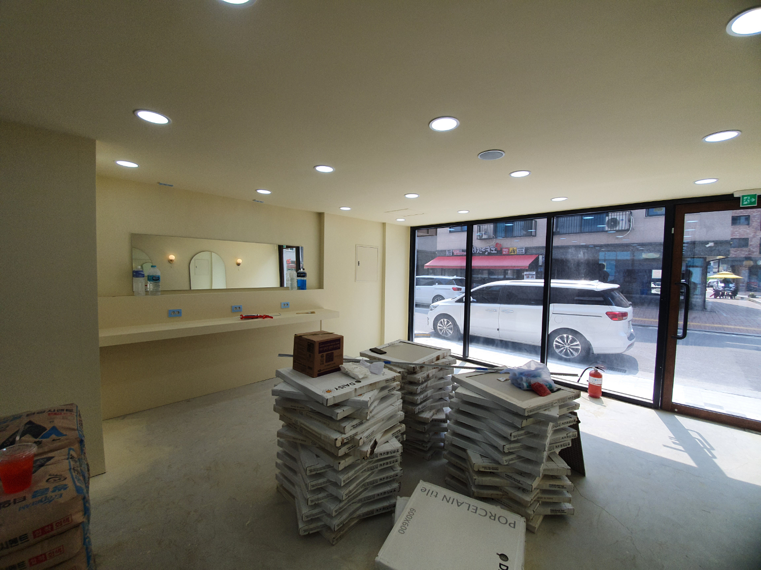 타일 작업은 물론 전기공사와 기타 다른 작업까지 동시에 진행되고, 각자의 분야별로 체계적으로 움직이기에 원하시는 시일까지 신속하게 맞춰드리고 있습니다. 그리고 처음부터 마무리까지 나의 집이라고 생각하고 정성을 다하고 있으니 믿고 맡겨주시면 좋을 것 같은데요. 이렇게 모두의 노력으로 탄생한 군포상가인테리어 미용실 헤어샵현장 보실까요?