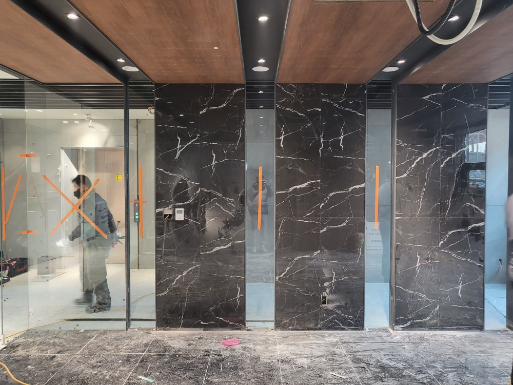 다음은 인천 청라 티엔에스 사옥 1층의 시공이