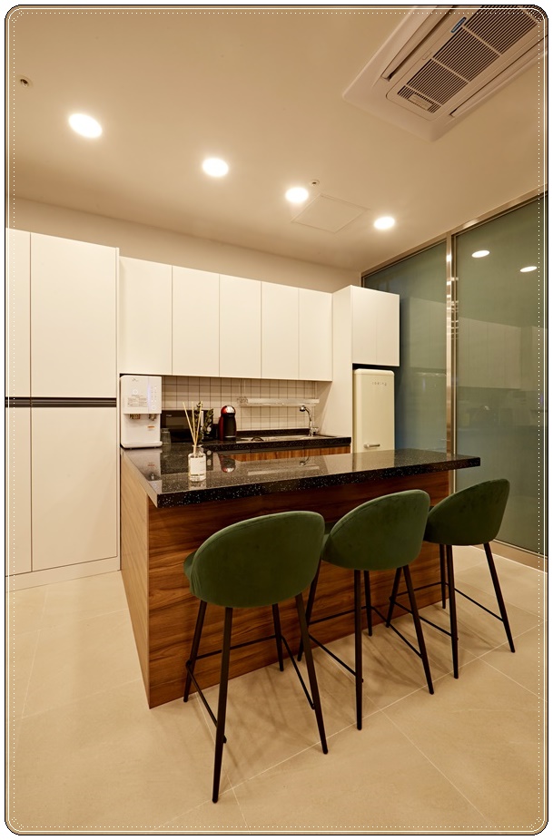 카페같은 사무실은 자유로운 업무 진행을 중요하게 생각하는 최근의 사무실인테리어 트렌드로 인기를 끌고 있습니다. 그렇기 때문에 좁은 면적의 사무실이어도 쾌적한 느낌의 탕비실을 꼭 구성해 일과 쉼의 밸런스를 맞추면서 자유로운 업무 진행도 이뤄질 수 있는 공간이 되도록 하고 있답니다.