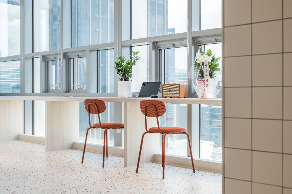 의자를 배치해 공간이 더 밝아보이도록