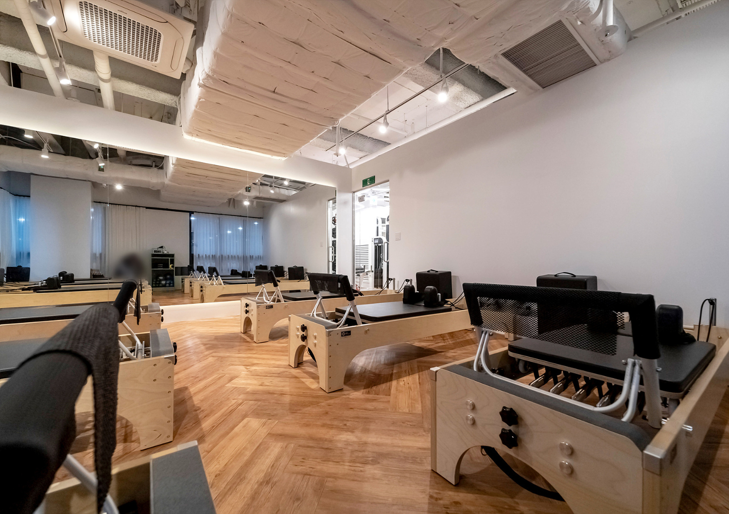 또한 공간마다의 크기가 좁지않고 넓은 편이지만 다양한 기구가 들어가는만큼 여러가지를 신경쓰고 거울에 자신의 모습이 오롯이 비칠 수 있도록 연출하였습니다. 그리고 통창마다 커튼을 설치하여 햇빛 및 시야를 차단하고 프라이빗한 수업 진행이 가능 하실 수 있도록 해드렸습니다.