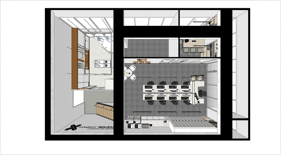 그 외 전신 거울, 감각적인 행거, 세련된 진열 테이블 등을 멋스럽게 배치한다면 심플하지만 품격있는 쇼룸을 연출할 수 있습니다. 금천 가산 인피니움타워 ys타워 복층 사무실 인테리어를 심플하면서 감각적으로 연출할 수 있는 디자인 업체를 찾으신다면 916디자인으로 문의해 주세요.