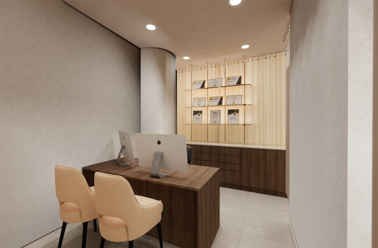 산부인과 진료실을 아늑한 분위기로 꾸미기 위해 다양한 요소를 고려하였습니다.