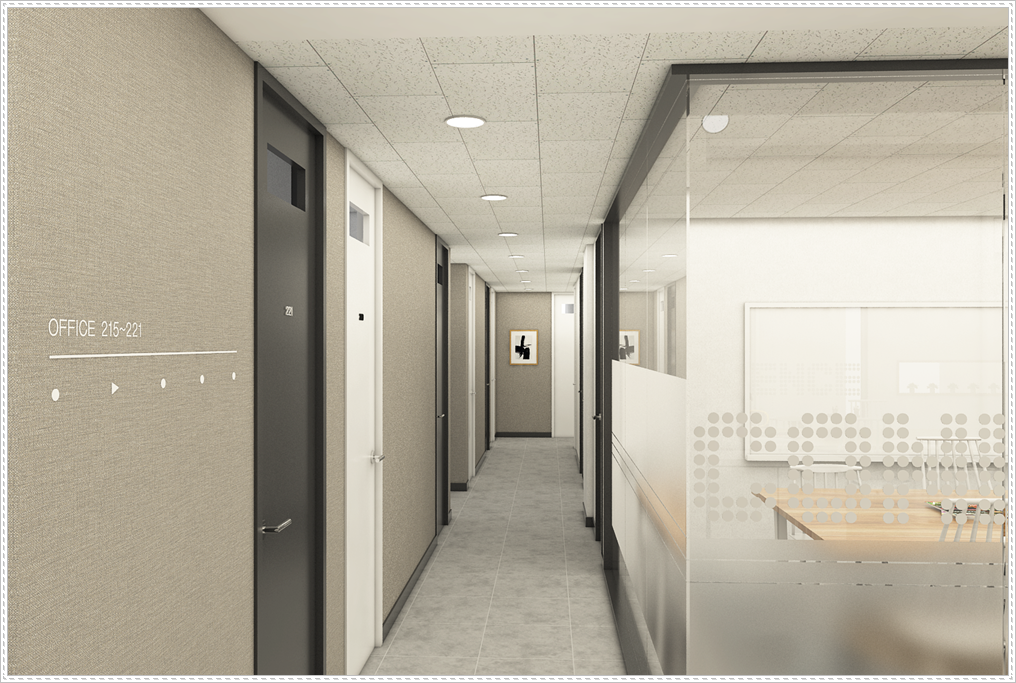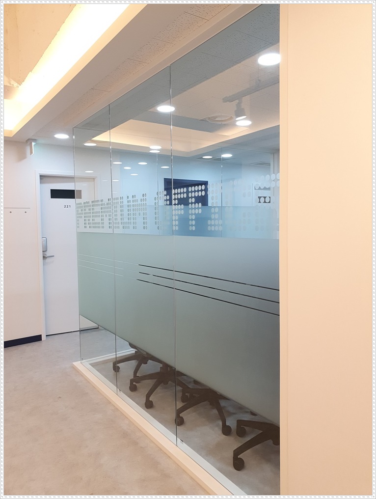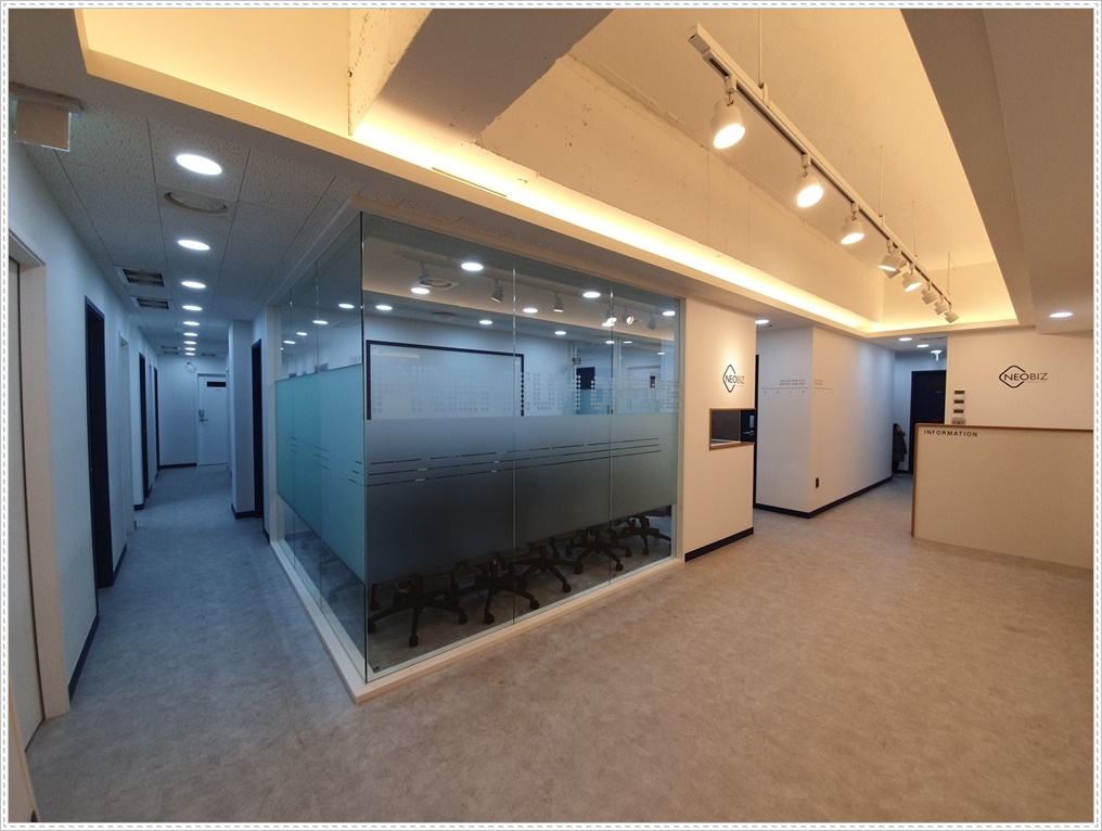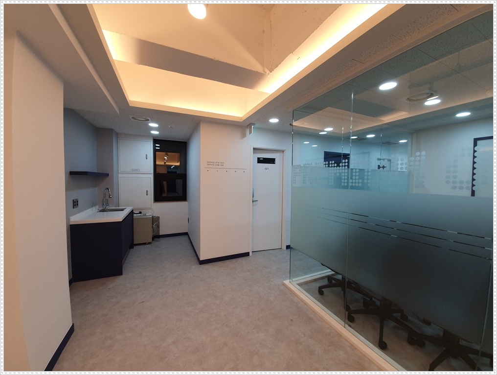 사무실은 마감을 통일해 깔끔하면서 쾌적한 분위기로 조성했으며 회의실은 편리하게 사용할 수 있도록 기반 시설을 완벽하게 계획했습니다. 입구 파사드는 화이트 컬러를 메인으로 사용하고 강화문 안쪽에는 유리 도어로 계획하고 중앙에 불투명 시트지를 시공하면 내부가 직접적으로 들여다 보이는 것을 차단할 수 있습니다.