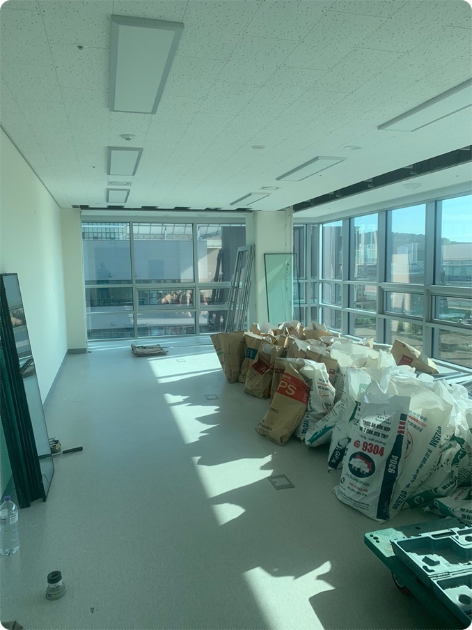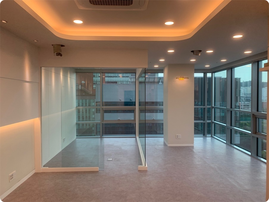 신축 지식산업센터단지를 비롯해 대규모 오피스 단지의 건물들은 유리벽으로 시공된 곳들이 많은데요, 우선은 이 벽을 철거해 베란다 확장을 함으로써 공간을 좀 더 넓게 활용합니다. 혹시 고객님께서 베란다 확장을 원하시지 않으면 그에 따라 디자인설계를 진행해드리니 걱정하지 않으셔도 됩니다.