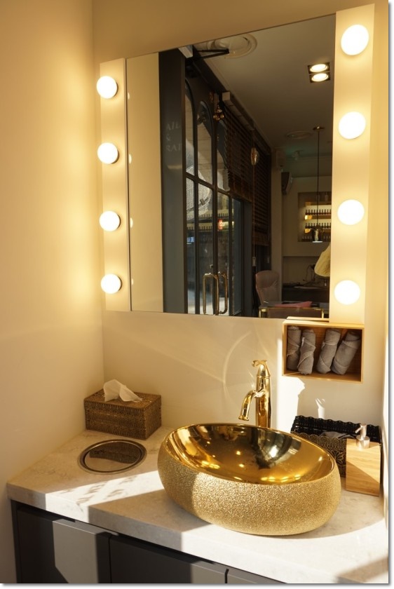 모든 작업을 마치고 나면 세면대에서 본인의 용모를 단정하고 다시 나갈 준비를 해야만 합니다. 이런 부분은 고객이 만족을 하고 다시 나갈 수 있도록 만들어야만 하며 이를 위해서 고객의 용모가 돋보일 수 있는 깔끔한 디자인과 조명을 이용해보았습니다. 네일 작업을 받은 고객들은 본인의 용모 상태에 만족을 하면서 이 세면 공간을 이용할 것이고 보다 더 좋은 결과를 만들어 낼 수 있을 것입니다.