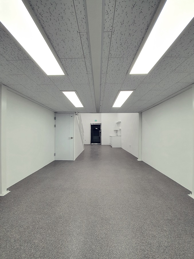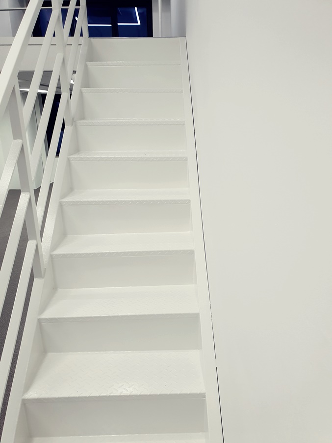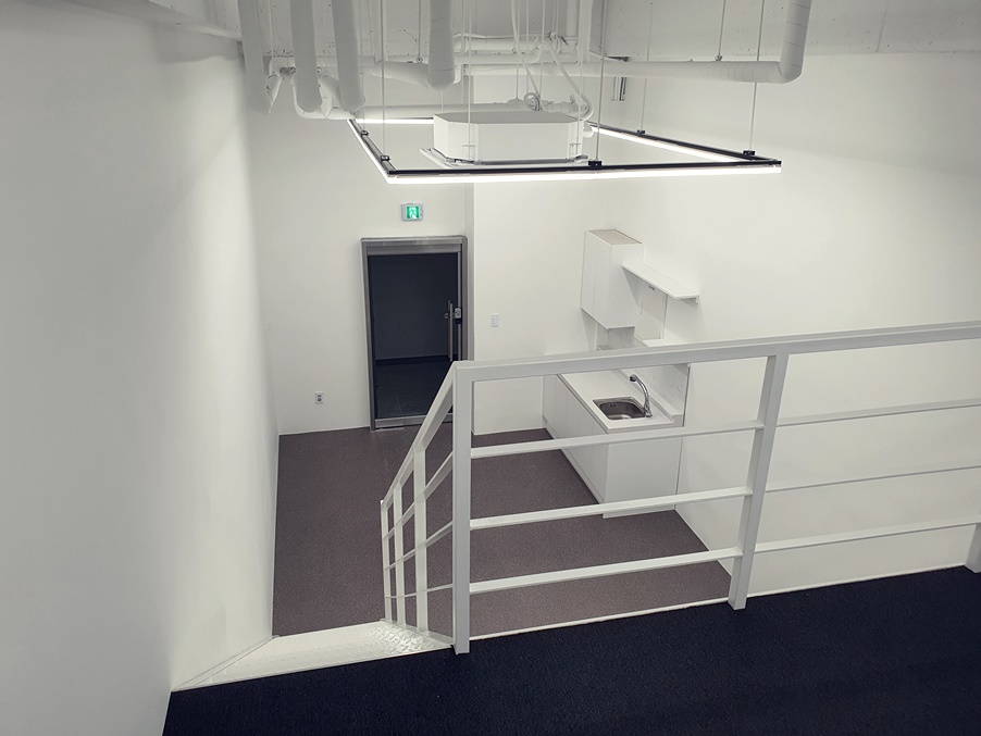 공용 사무공간으로 사용될 하층부 역시 화이트로 마감해 공간이 넓어 보이도록 했고 계단 아래 부분에는 도어를 시공해 창고로 활용할 수 있도록 했스며 무장애 공간으로 시공해 사용성과 편의성을 높였습니다.