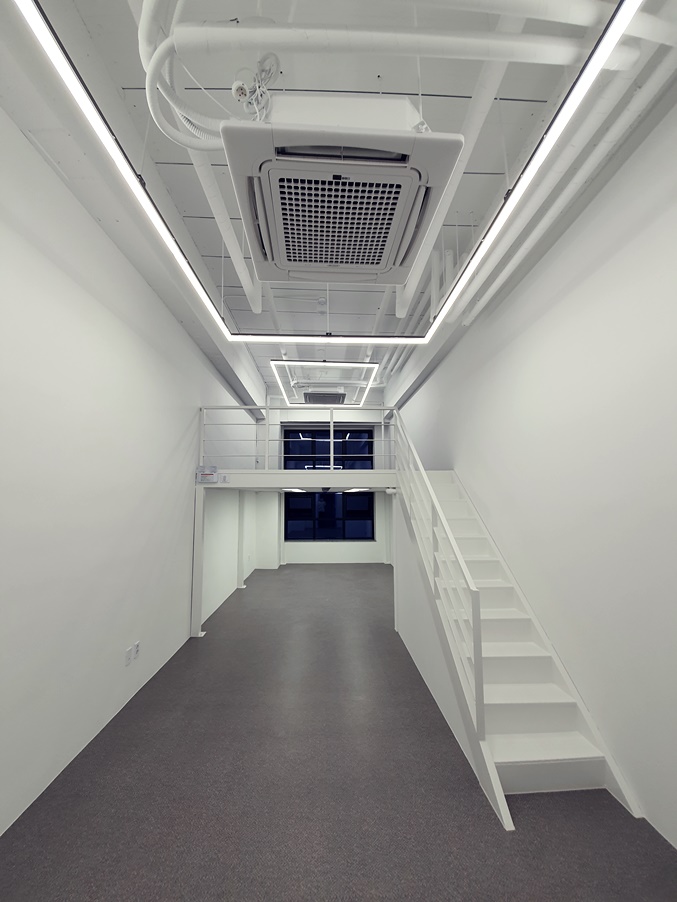 상층부 조명 역시 라인 조명으로 시공해 충분한 조도를 확보하도록 했고 노출천장의 배관까지도 화이트로 마감해 자연광과 어울려 좀 더 밝고 화사하게 사용할 수 있도록 했습니다. 남양주 별내 동광비즈타워 복층사무실인테리어, 소형평수 화이트 컬러로 밝게!시공하고 싶으시다면 저희 916디자인으로 문의해 주세요. 튼튼하고 안전한 복층 구조물 시공으로 안정적으로 사용할 수 있는 퀄리티 높은 사무실을 합리적인 견적으로 진행해 드리겠습니다.