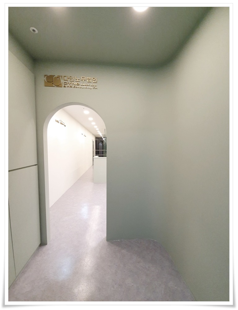 기업을 드나드는 출입문과 내부에 있는 방 또한 따로 가벽을 사용한 것이 아니라 이와 같은 아치형 구조를 이용해서 작게나마 분리를 시도하였습니다. 좁은 사무실에 인테리어 구성은 자칫하면 가벽의 남용으로 인해서 좁은 사무실이 더 좁아보이는 악효과를 불러일으킬 수 있습니다. 저희는 이러한 부분을 아치형 가벽을 통해서 해결하였습니다.